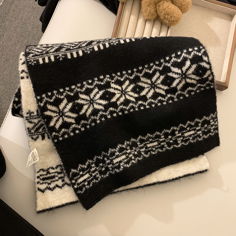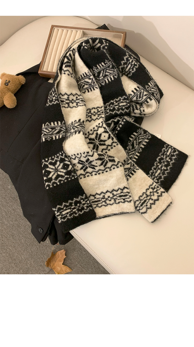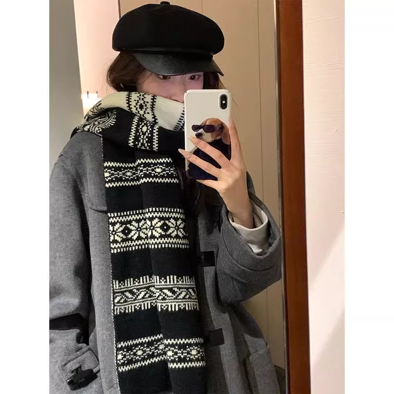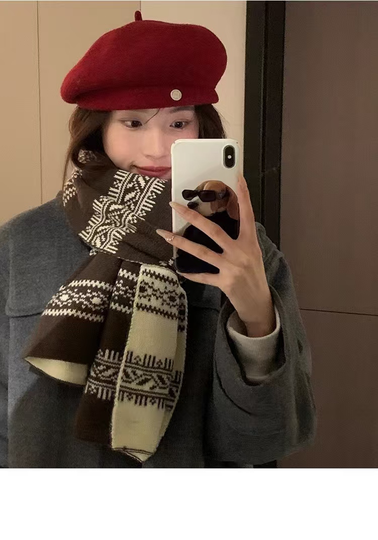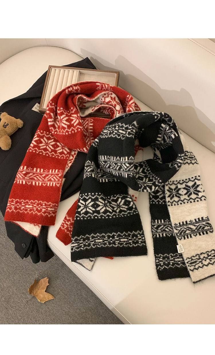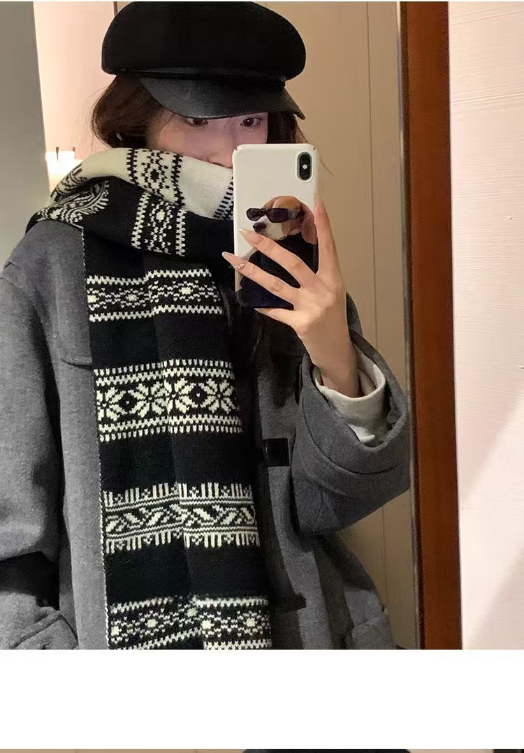 费尔岛风新年红双面针织羊绒围巾 女冬季氛围感百搭披肩保暖围脖