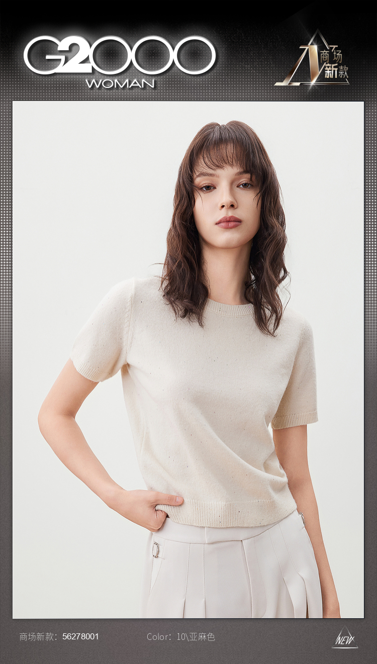 G2000【闪片装饰/商场新款】女装FW25柔软舒适百搭短袖针织衫56278001