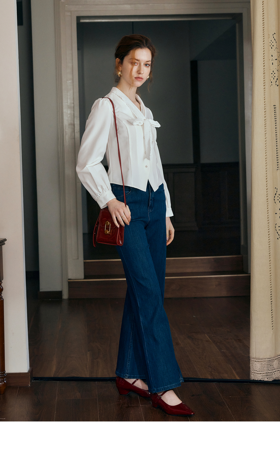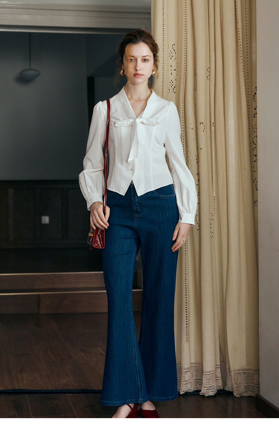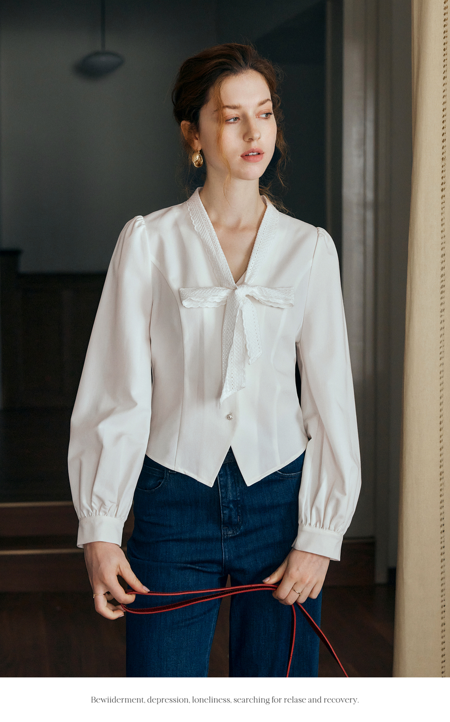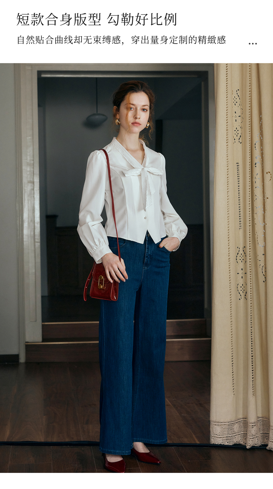 OLrain欧芮儿法式甜美短款衬衣女秋季2025新款花边飘带慵懒上衣