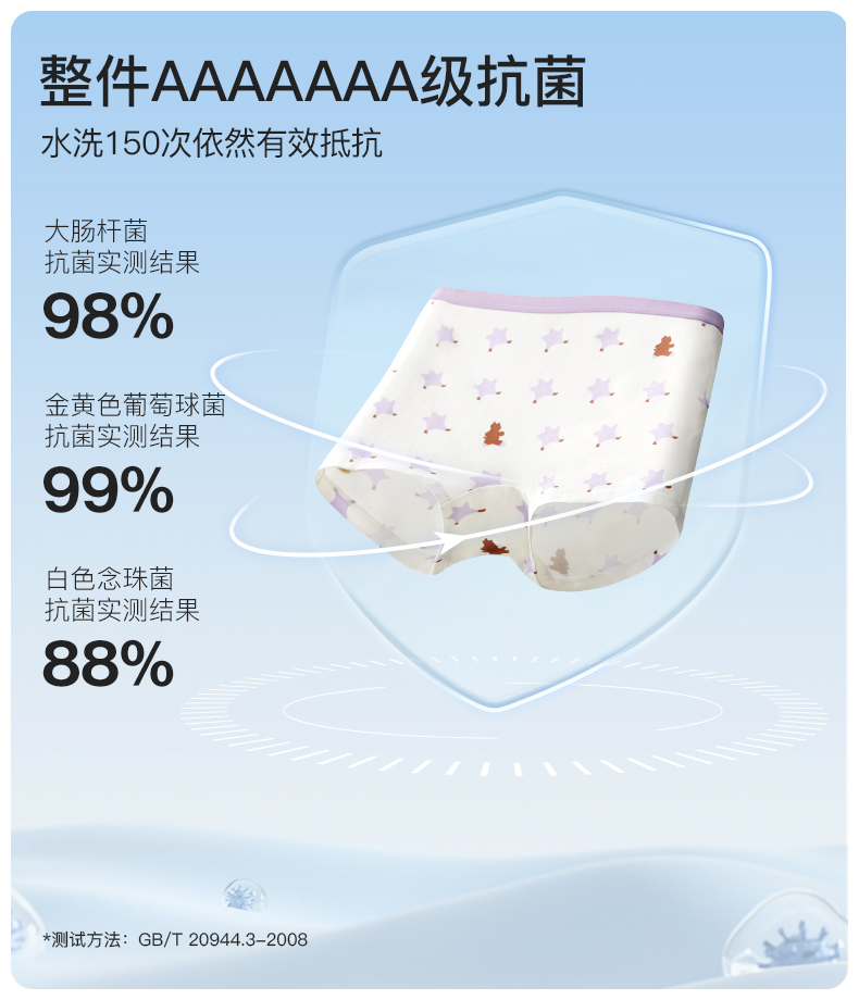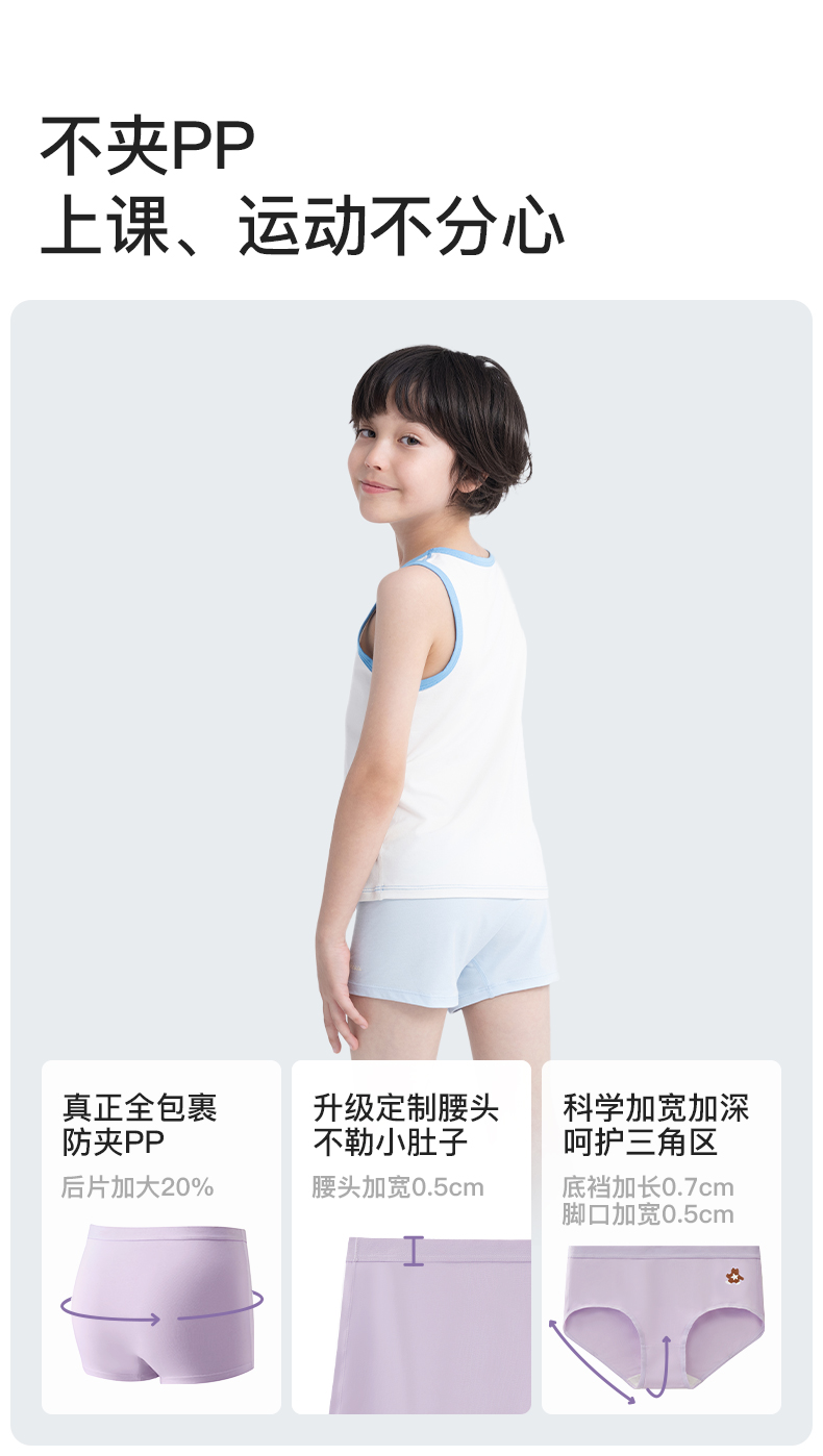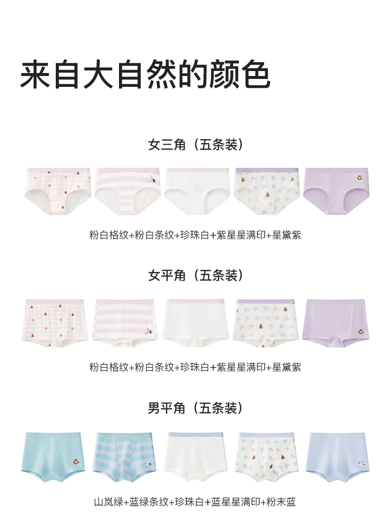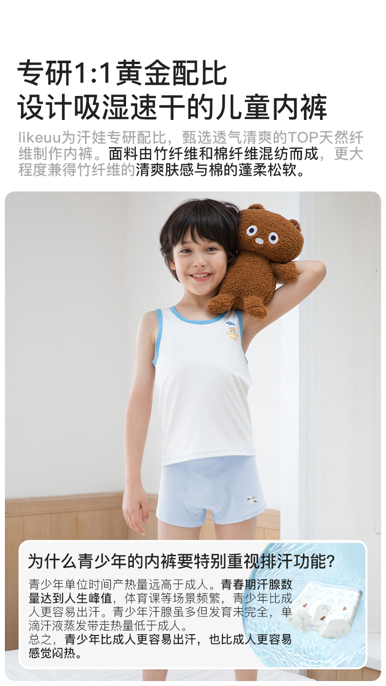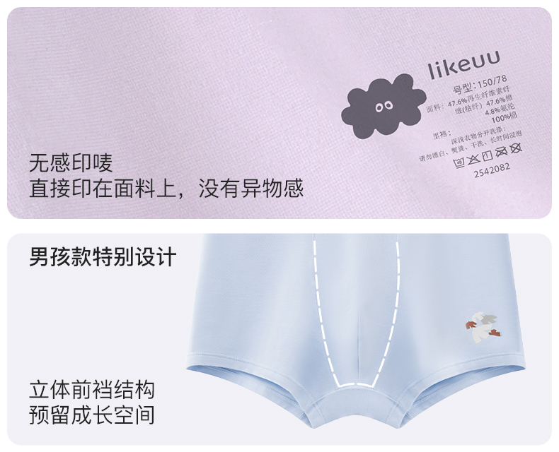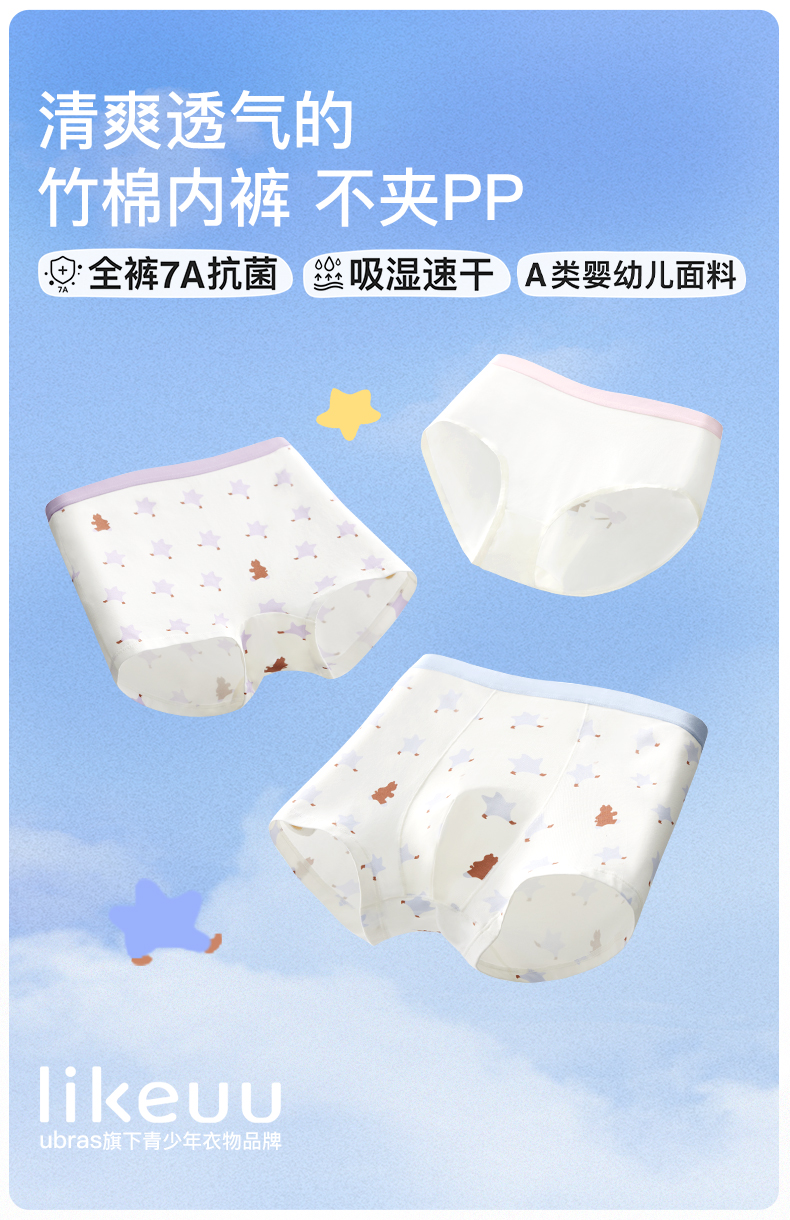 likeuu男女童内裤5条装竹纤维排汗抗菌内裤三角平角透气