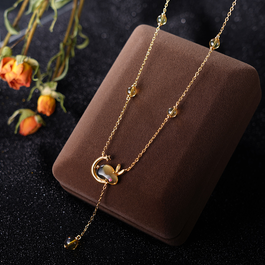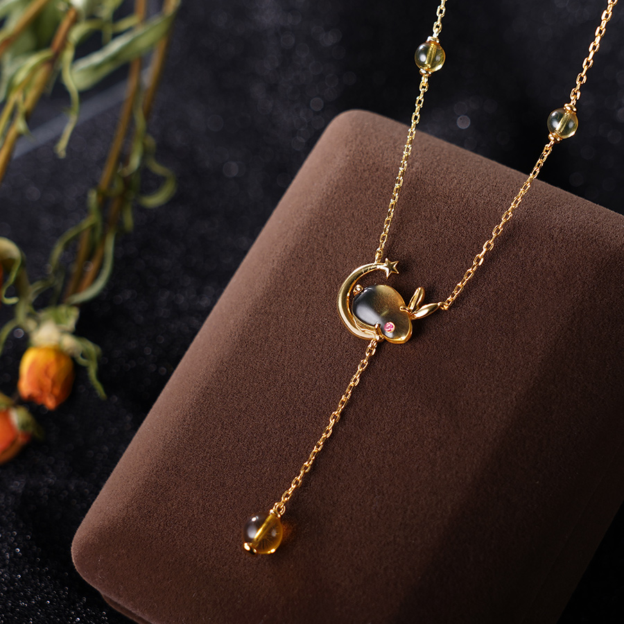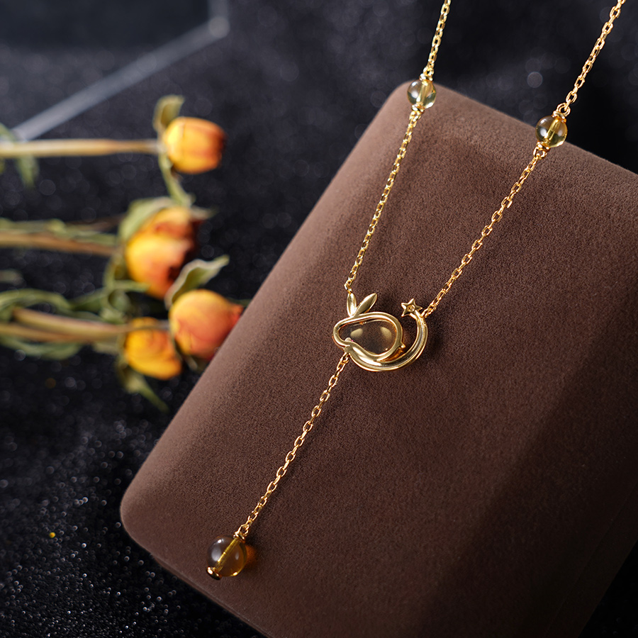 子佩集S925银【星月兔】套链项链【S15】纯银琥珀镀金蓝珀2404