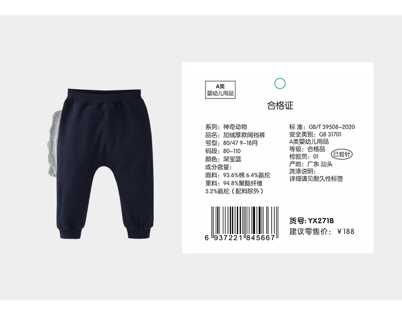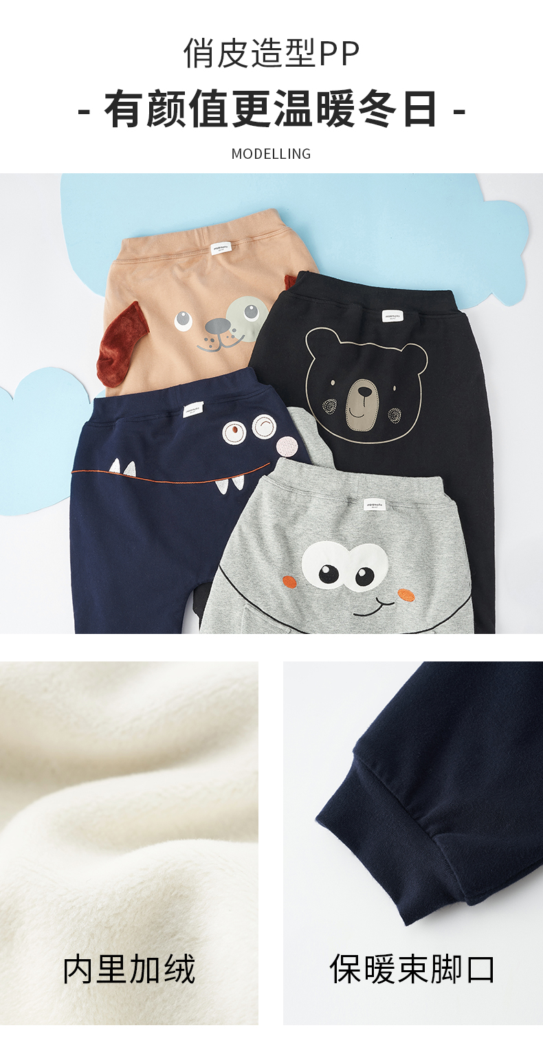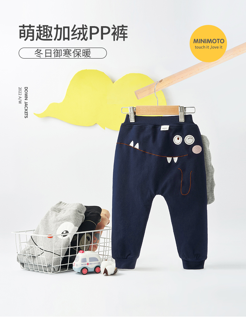 小米米童衣秋冬新款男童长裤女童加绒裤冬季运动可爱裤休闲束脚裤MIM-YX27
