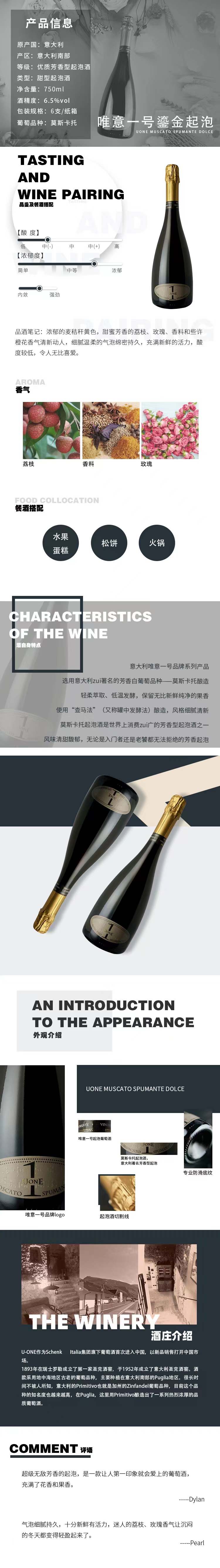 意大利原瓶进口 唯意一号鎏金优质芳香型起泡酒 甜型 6.5%vol 750ml/瓶