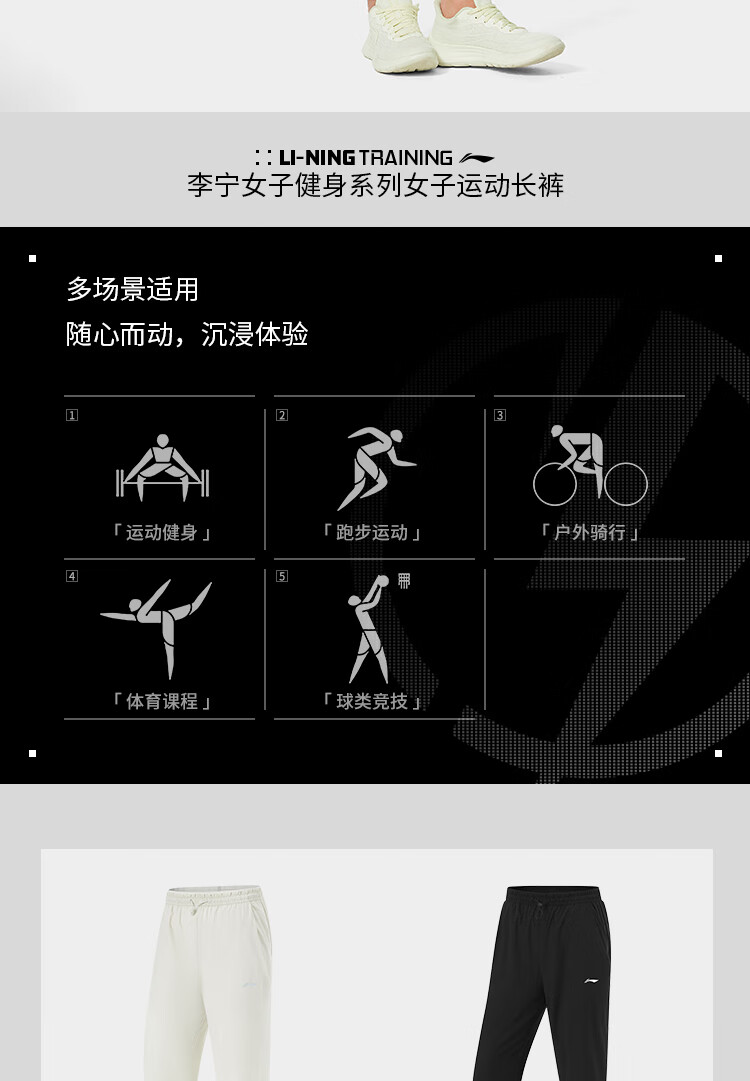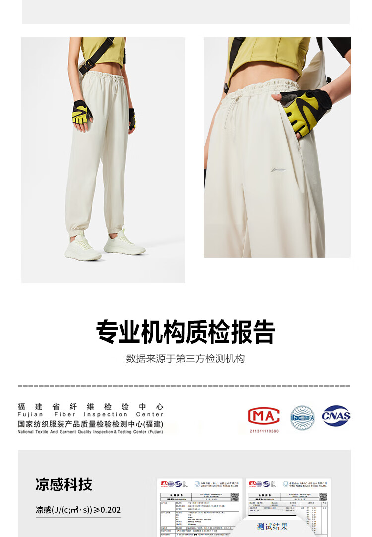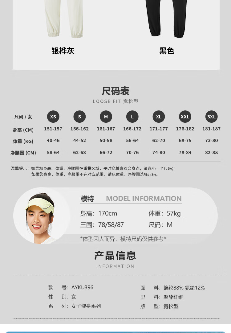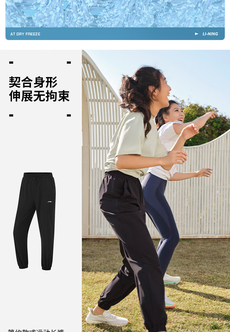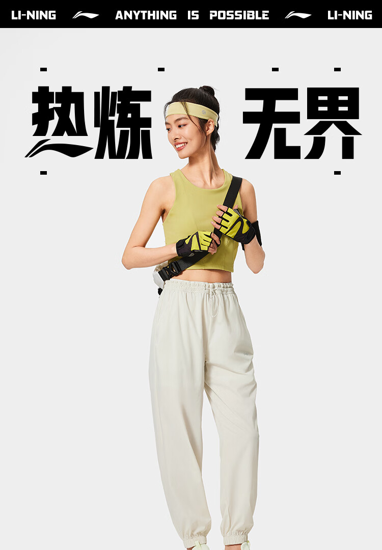 李宁健身系列女子束脚冰感舒适宽松运动长裤 银桦灰AYKU396