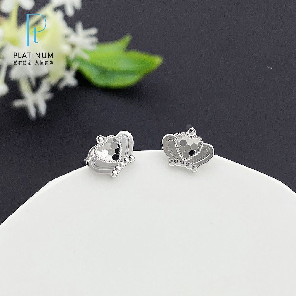【限时8.8折】【线上铂金馆】PT950 #皇冠 【国际铂金协会】铂金鱼鳞皇冠耳饰耳钉(直针配铂金耳迫)(BES00186)预售产品下单后不退款不退货不换货不补差价)
