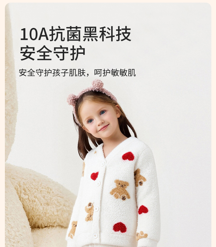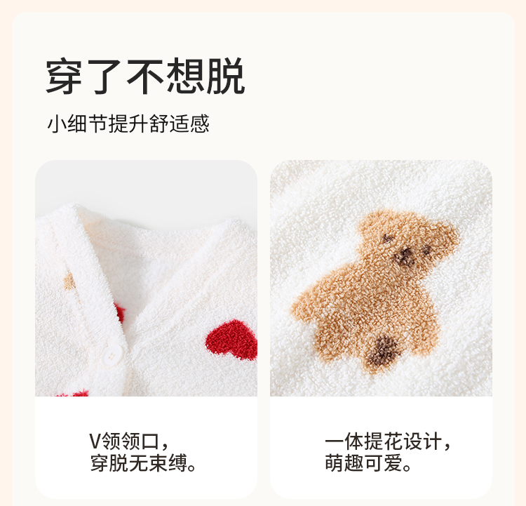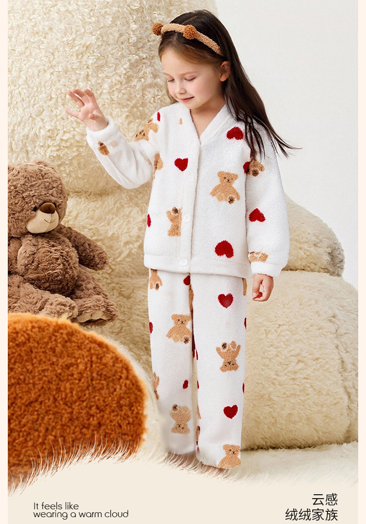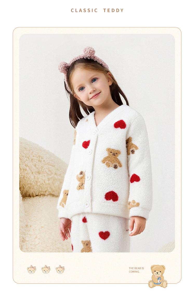 【清仓捡漏】【130-160】【精典泰迪】女童加厚半边绒开衫睡衣套装