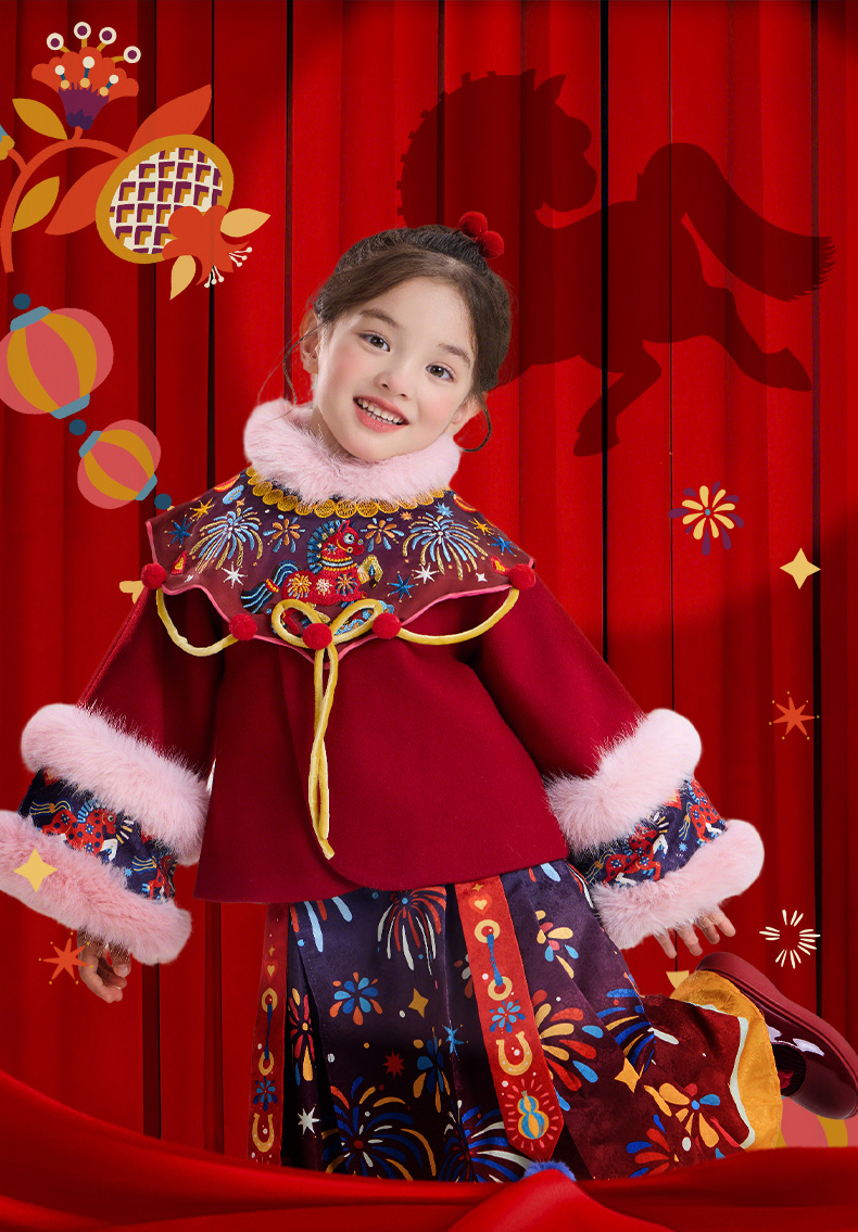 【云优选】年衣童装女童冬季新款中式公主马面裙加绒盛世跃马汉服套装