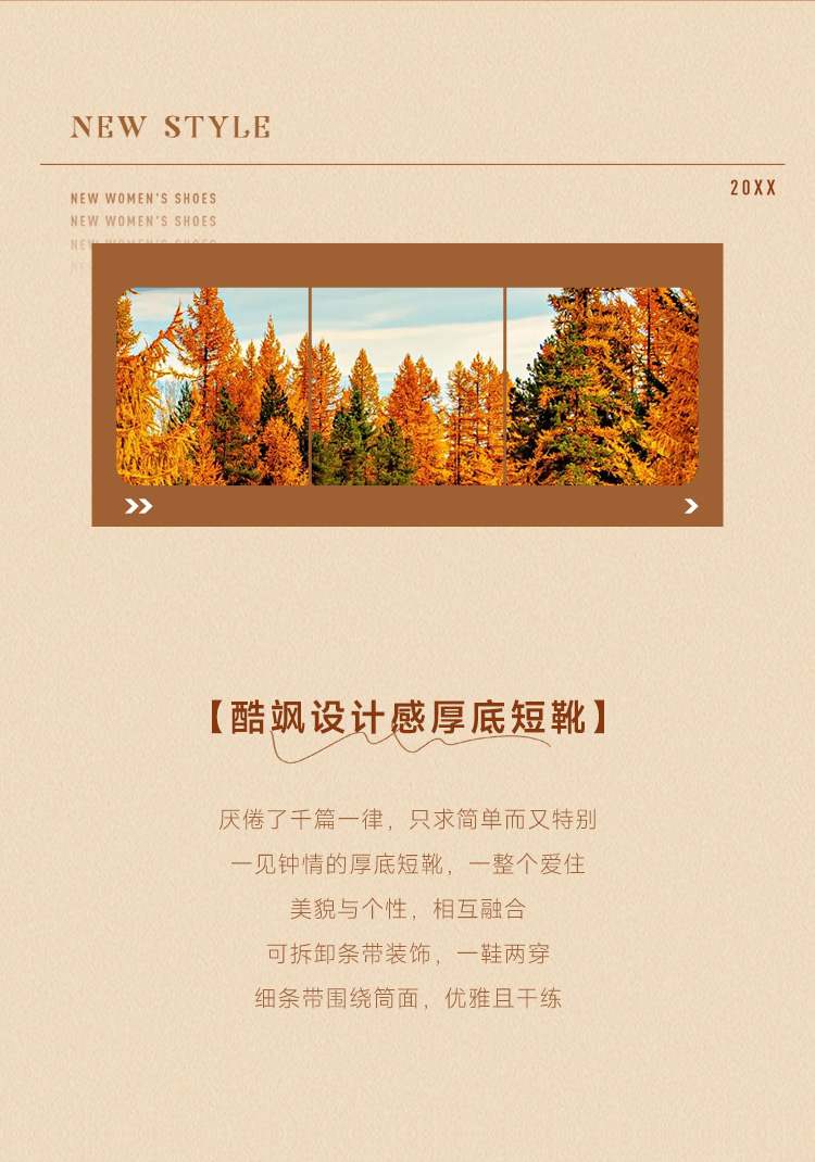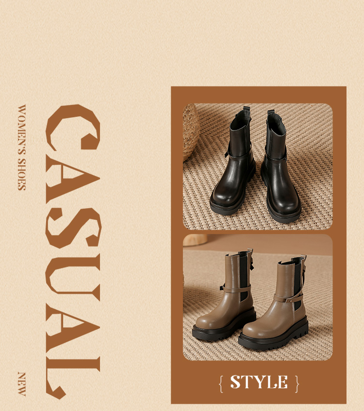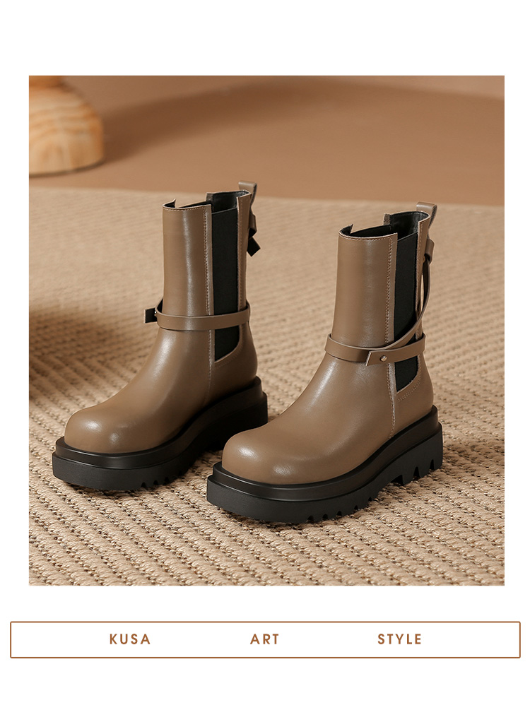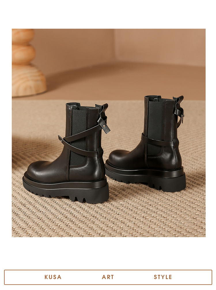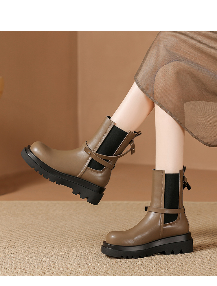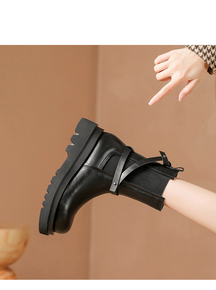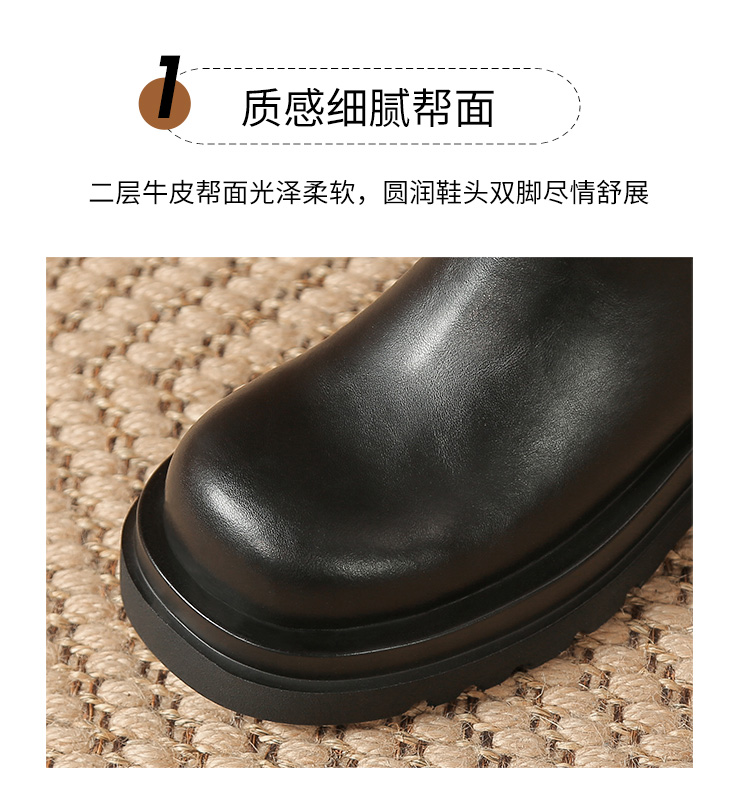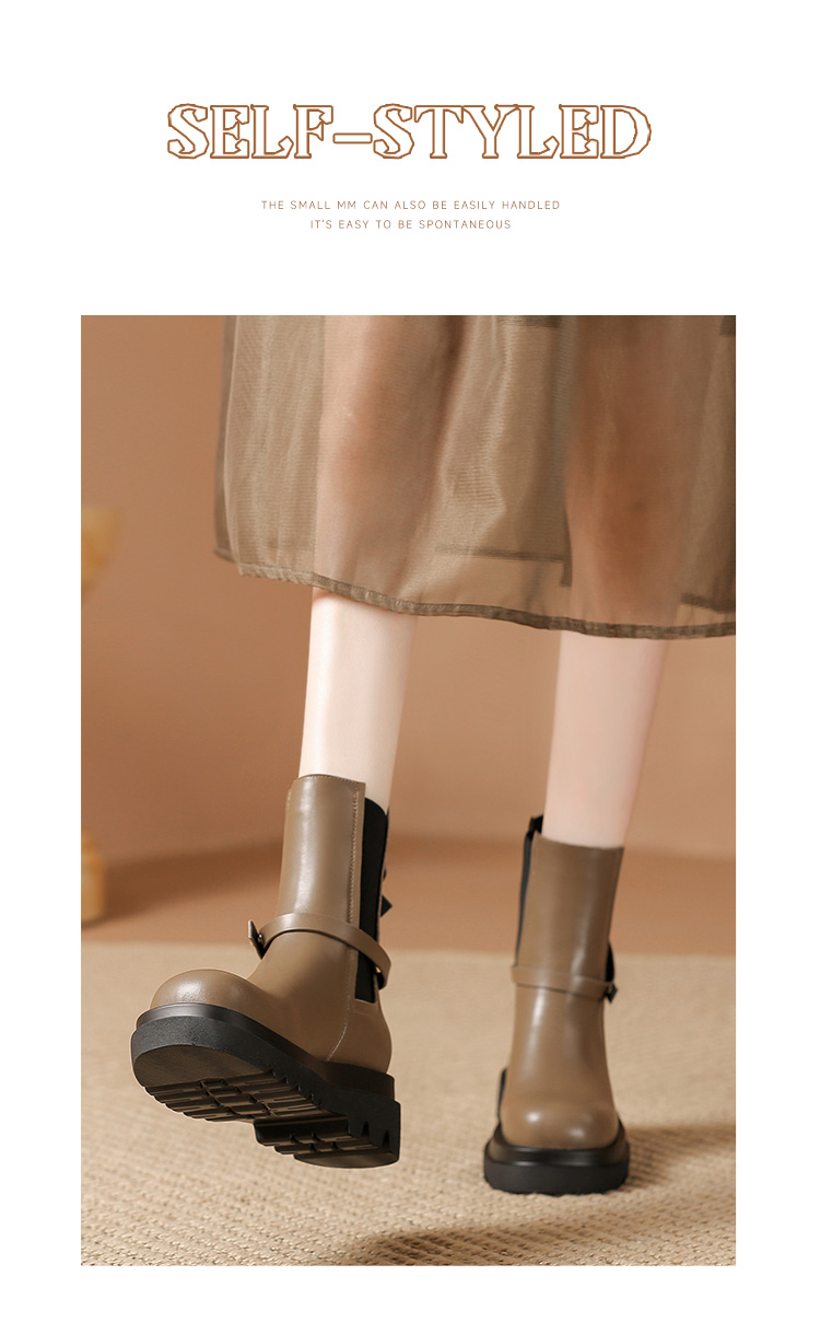 ZHR厚底短靴2023秋季新款气质圆头休闲百搭短筒酷飒设计感厚底短