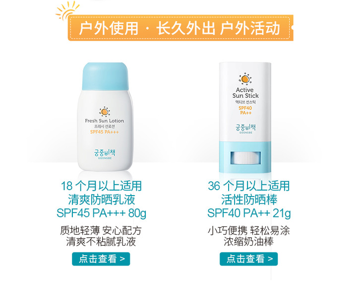 宫中秘策儿童防晒霜80ml宝宝婴幼儿学生小孩防紫外线防晒乳