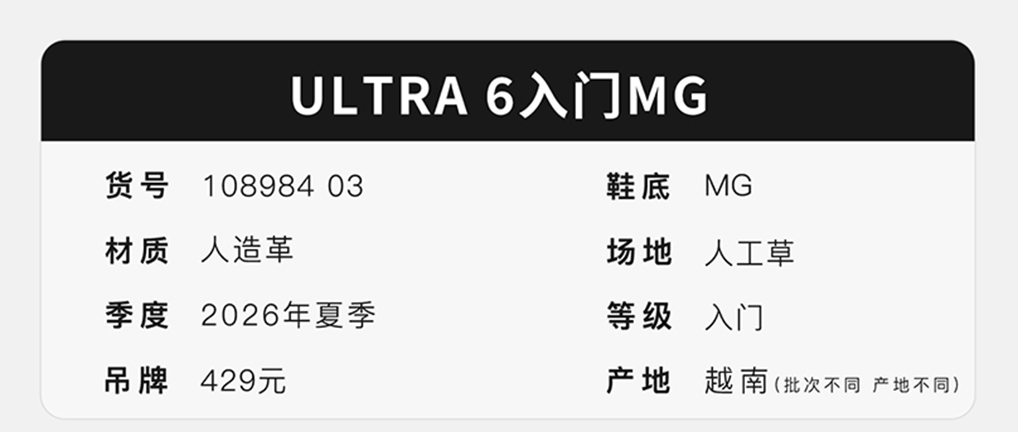 小李子PUMA彪马 ULTRA 6 入门级MG短钉成人足球鞋男108984 03