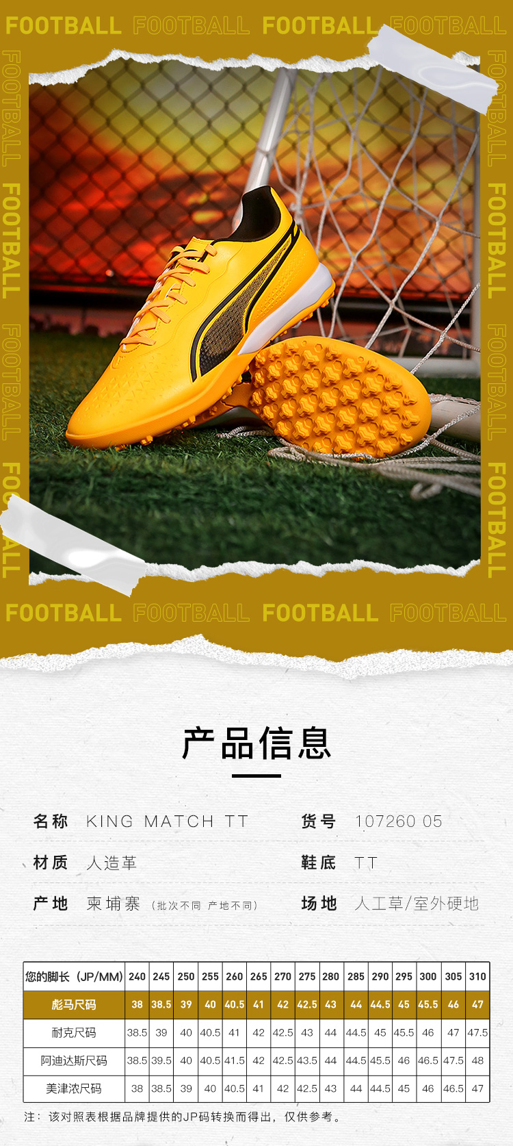 小李子PUMA彪马KING MATCH TT碎钉中端成人足球训练鞋男107260 05