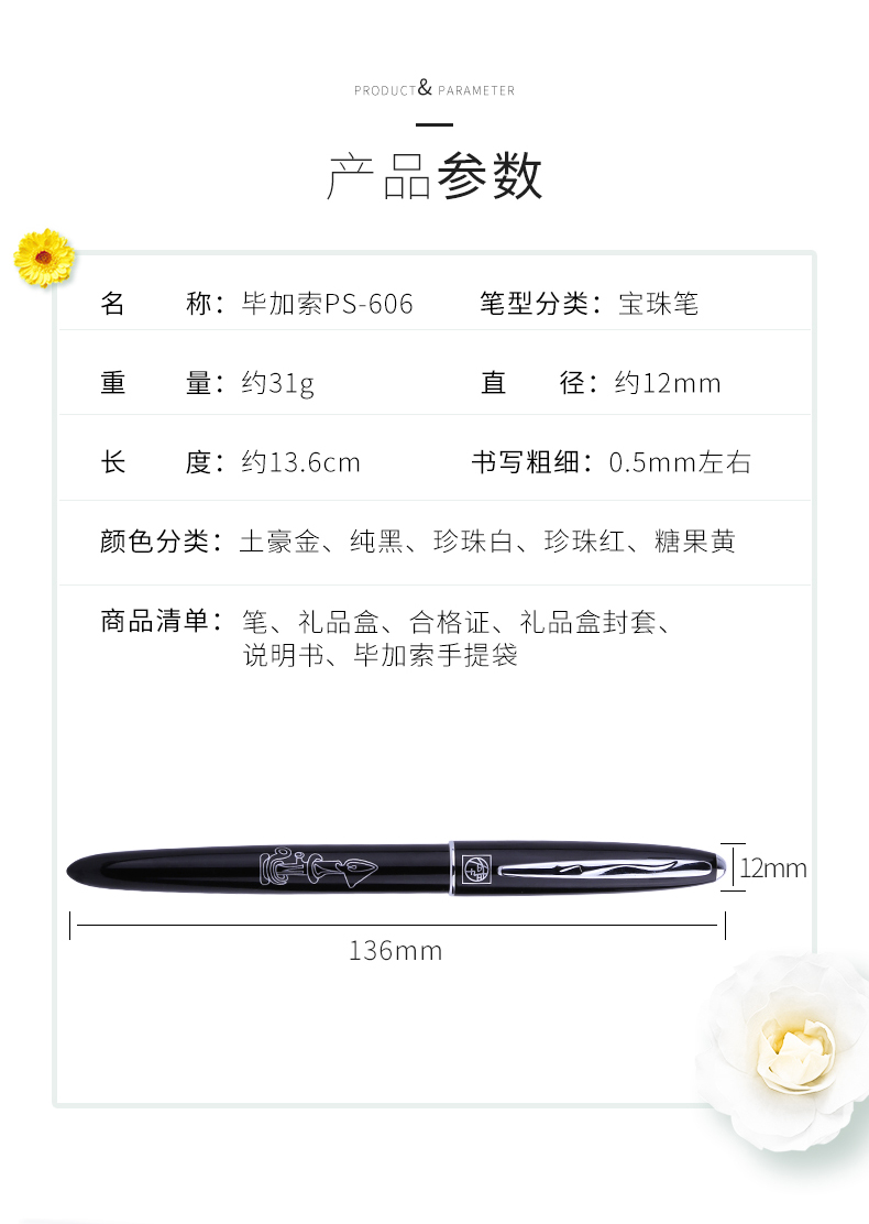 毕加索财务笔PS-606珍珠白