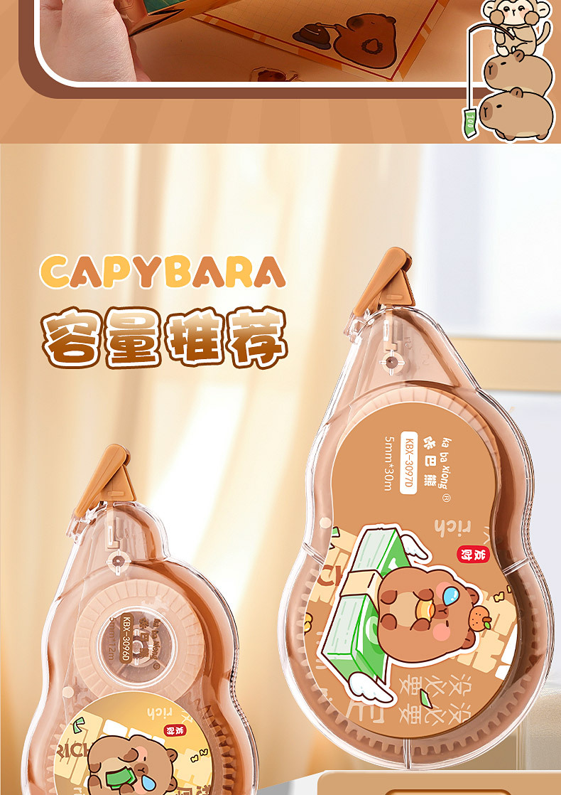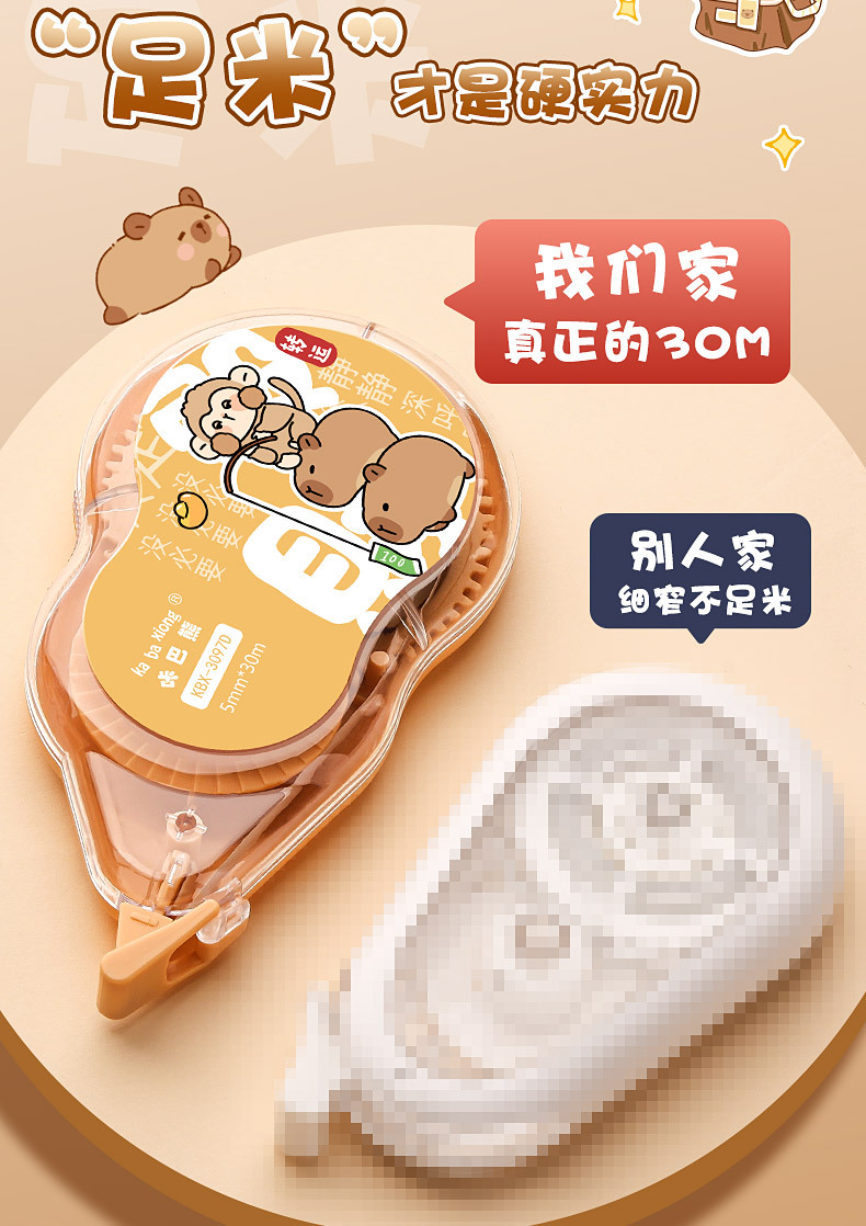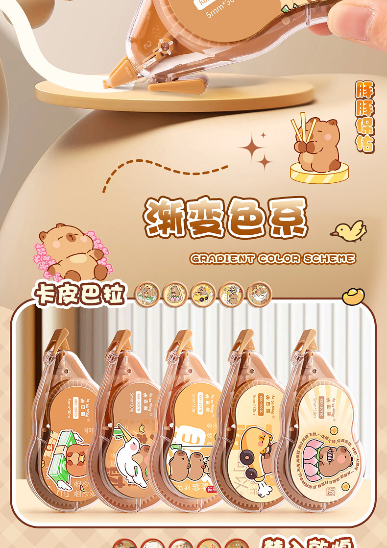 开学季福利!【中国风修正带】咔巴熊大容量渐变色系修正带涂改带学生专用改字修改带改正带便携式盒装