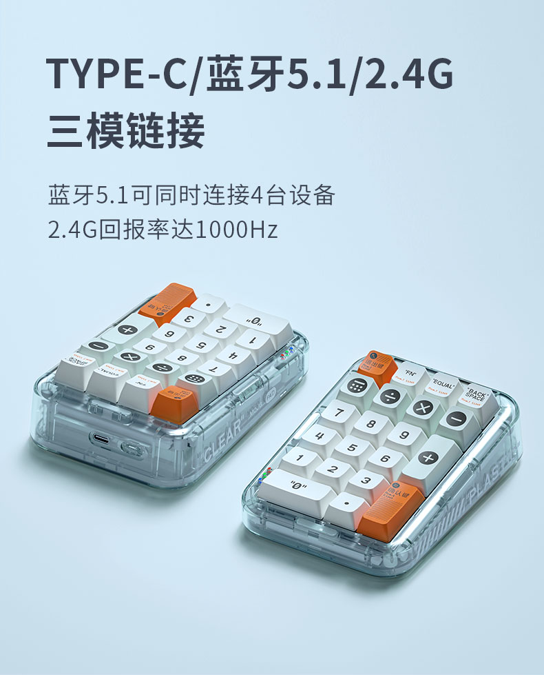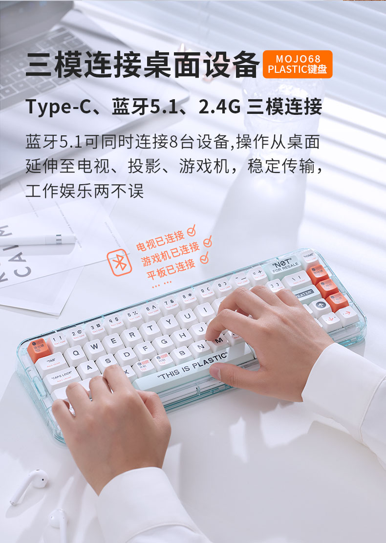 MelGeek Mojo68 无线三模机械键盘 透明色 白轴/茶轴