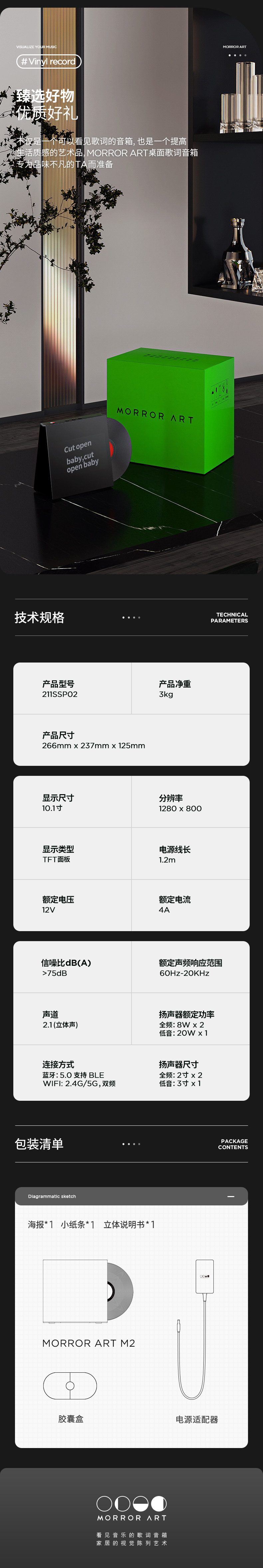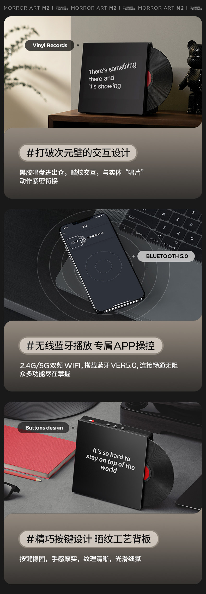 MorrorArt 悬浮歌词透明蓝牙音箱 M2 黑胶唱片机悬浮歌词蓝牙音响