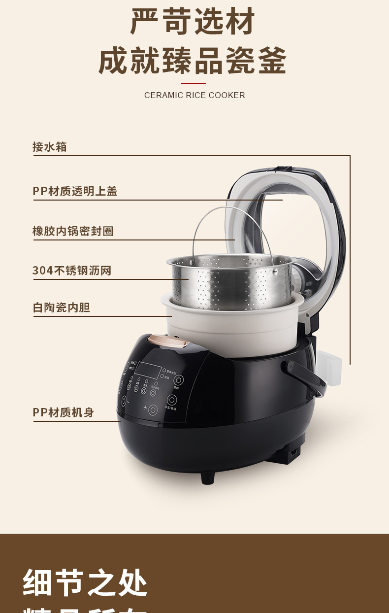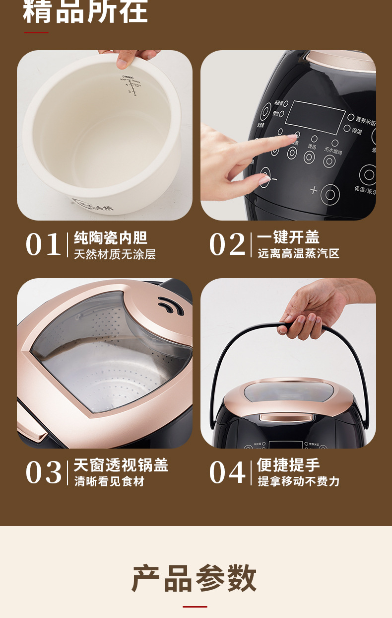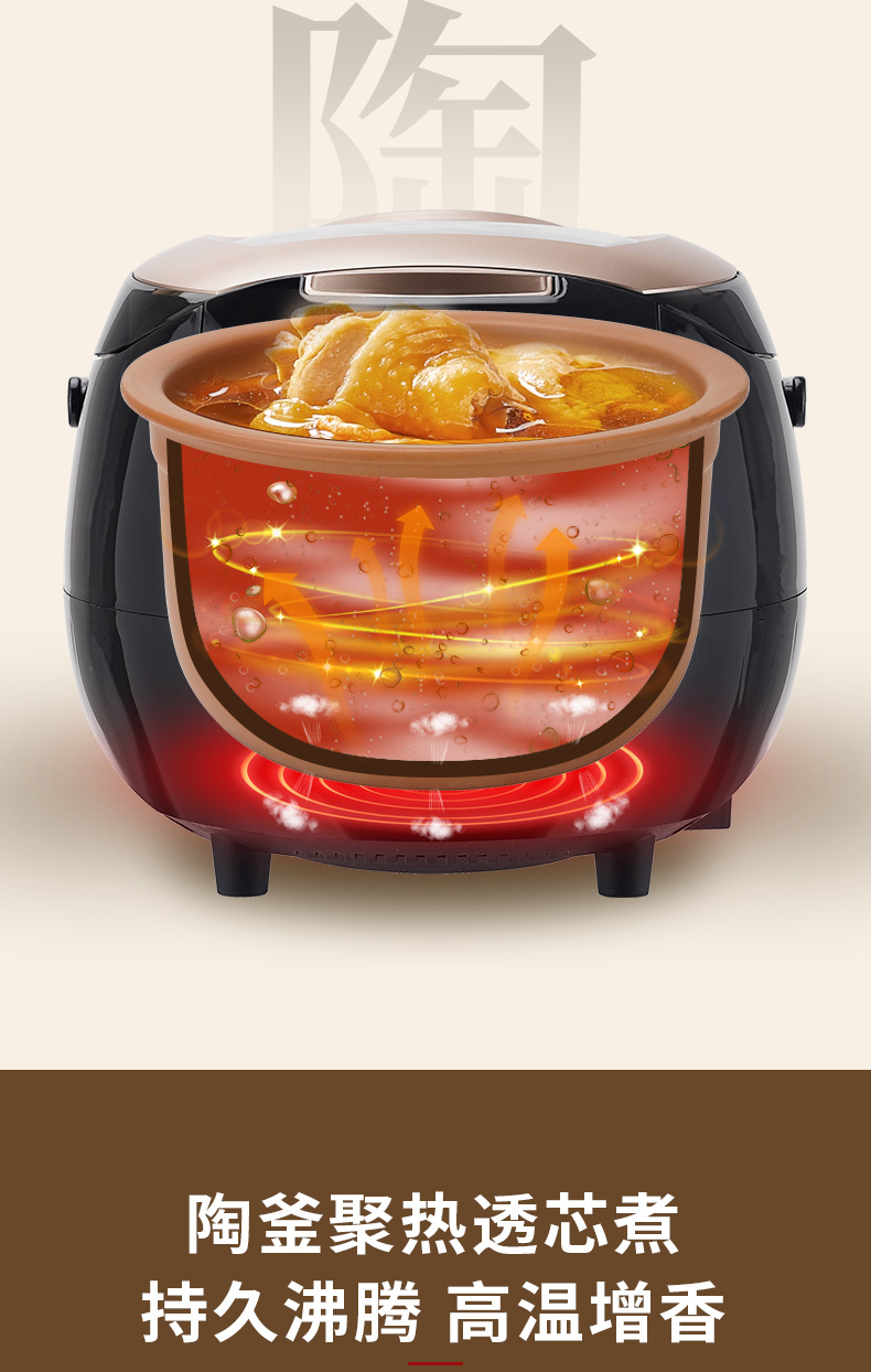 【多功能陶瓷瓦胆电饭煲】陶瓷内胆电饭煲 5L大容量多功能电饭锅预约柴火米饭