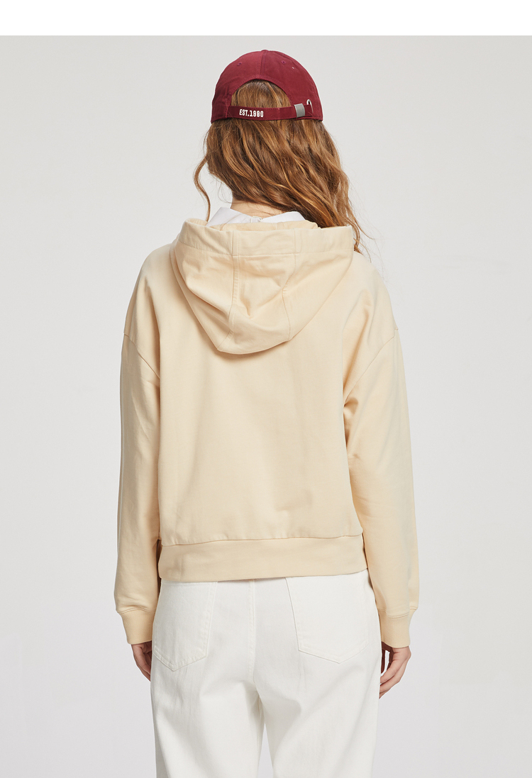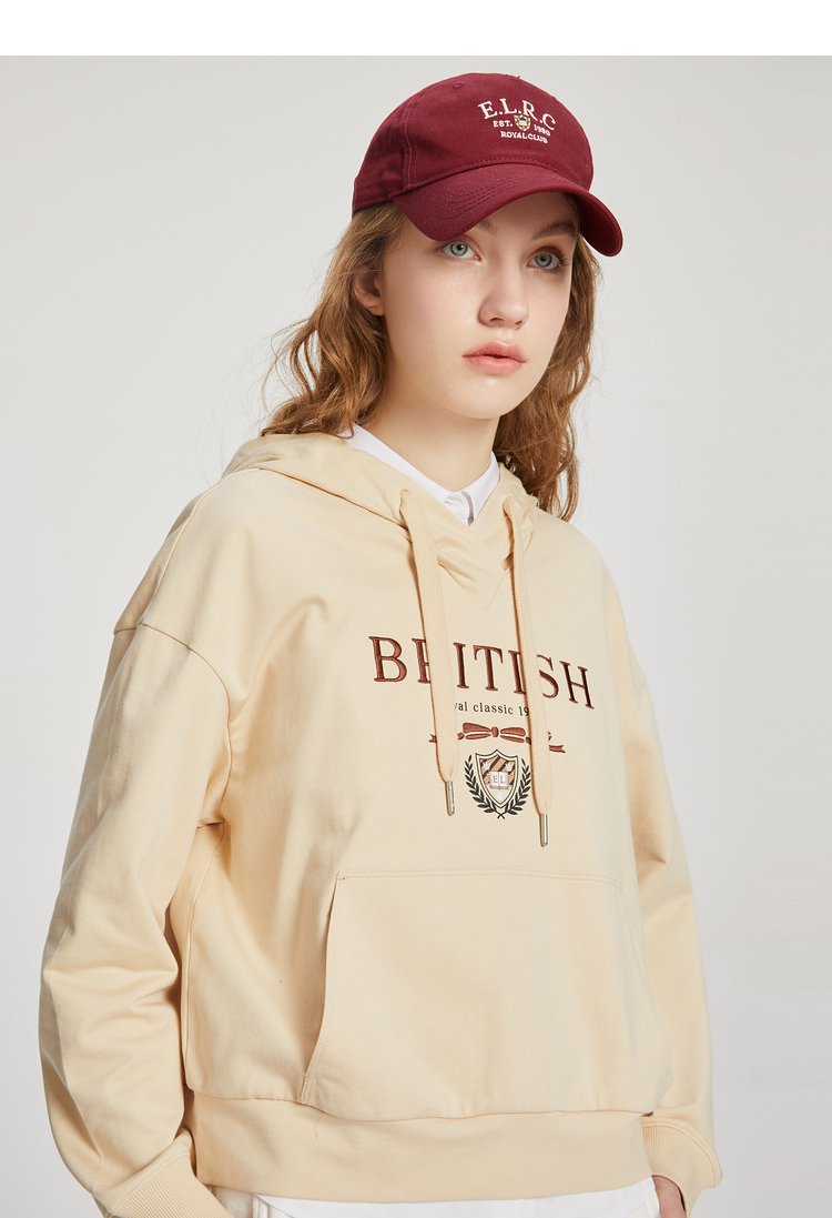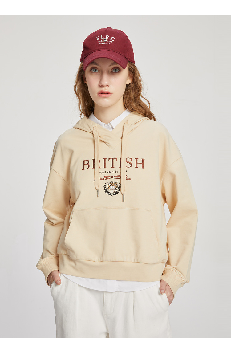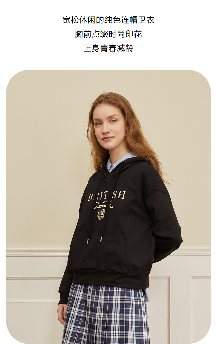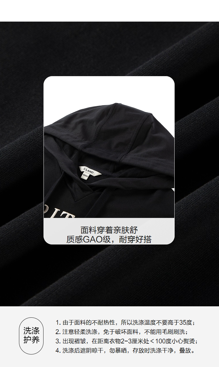 ELAND衣恋2022年春季新款宽松休闲抽绳连帽时尚印花减龄卫衣女EEMTC23H1M