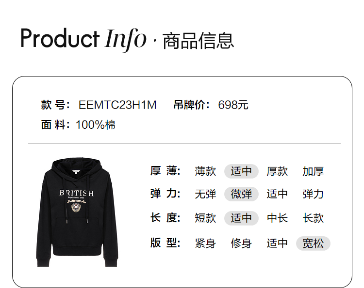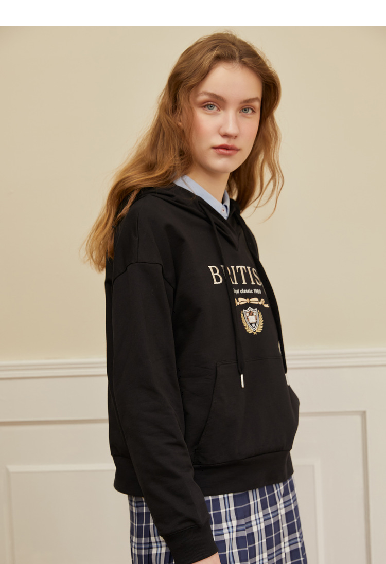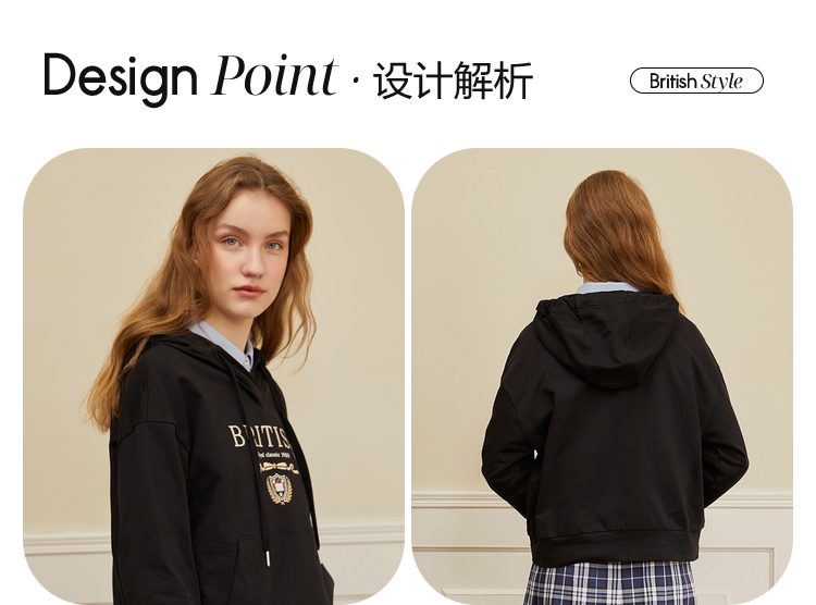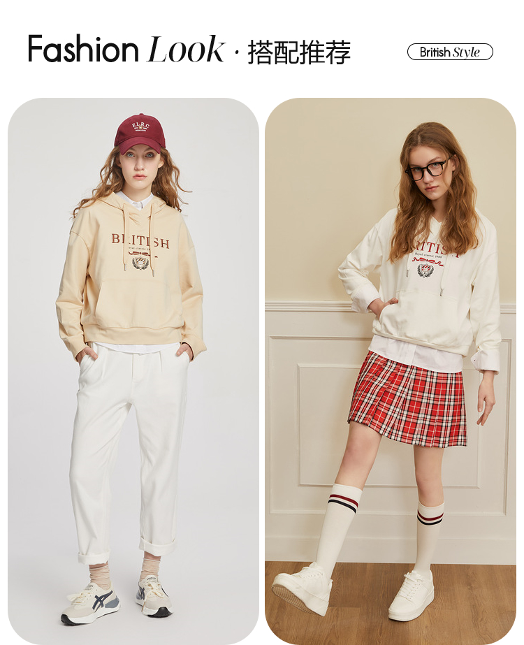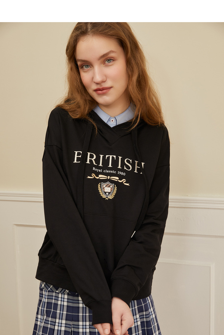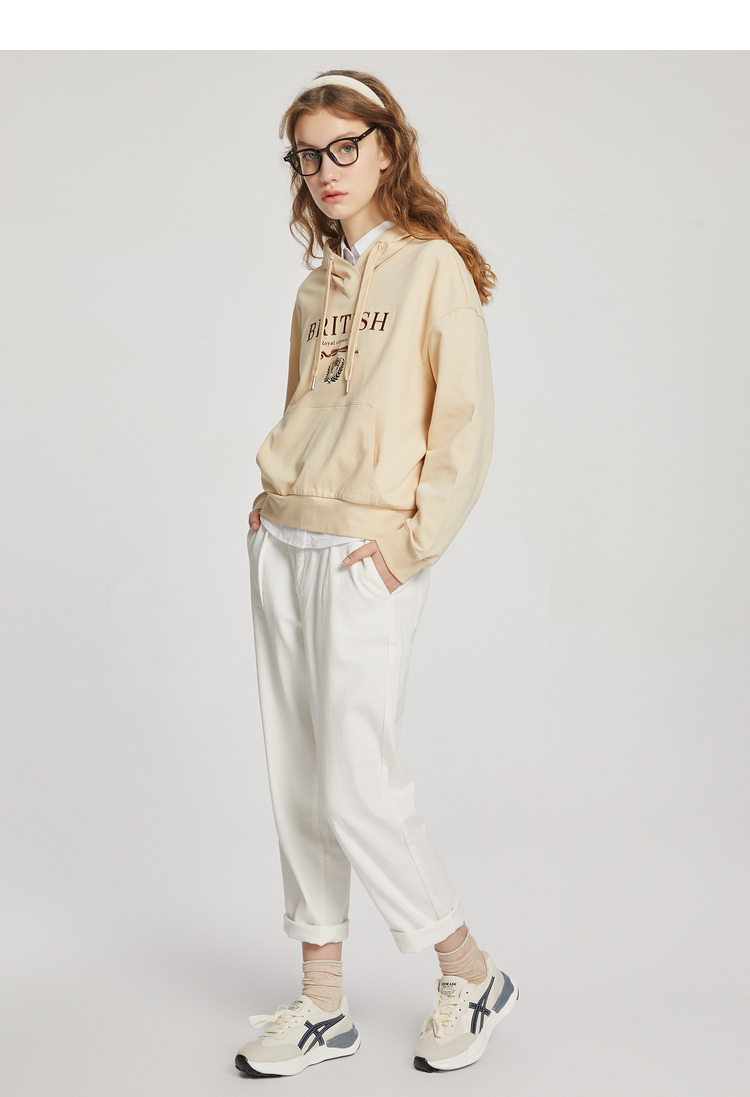 ELAND衣恋2022年春季新款宽松休闲抽绳连帽时尚印花减龄卫衣女EEMTC23H1M