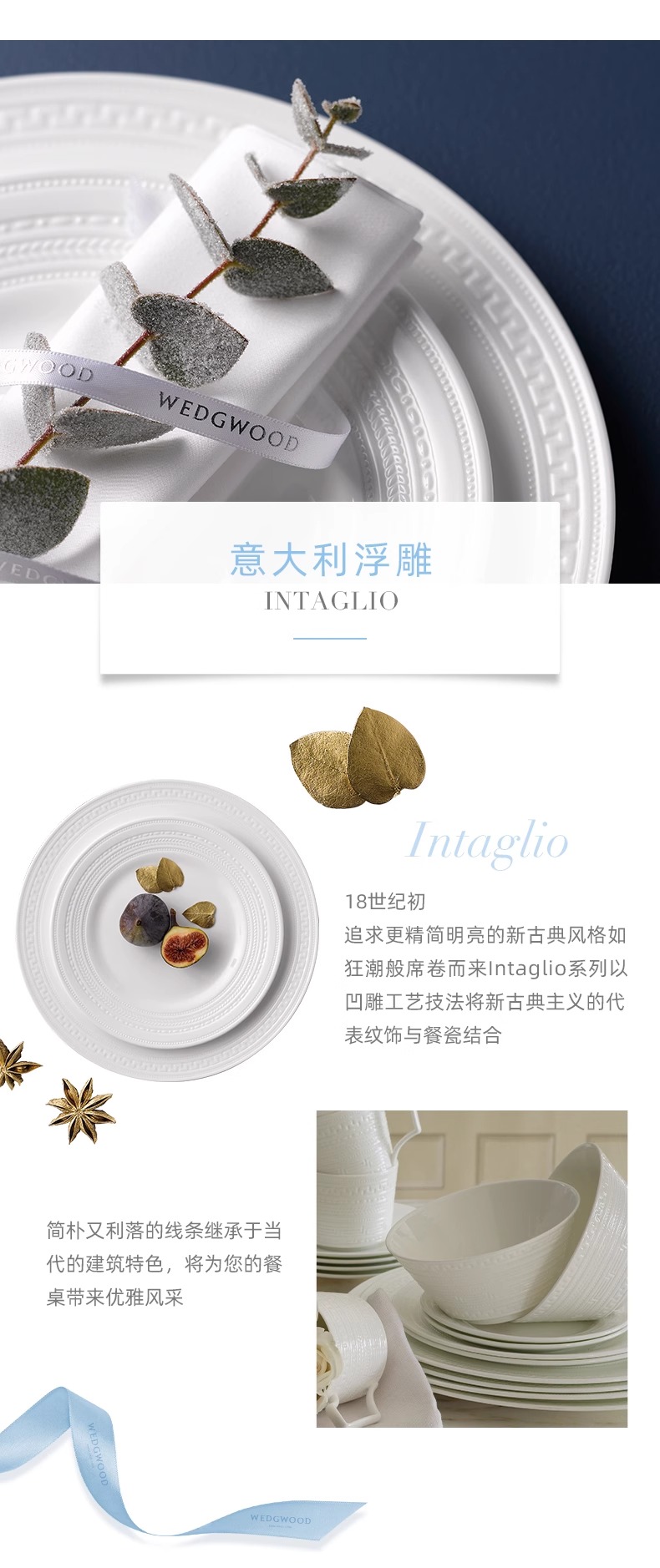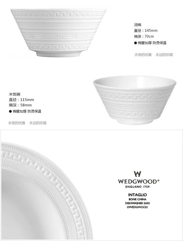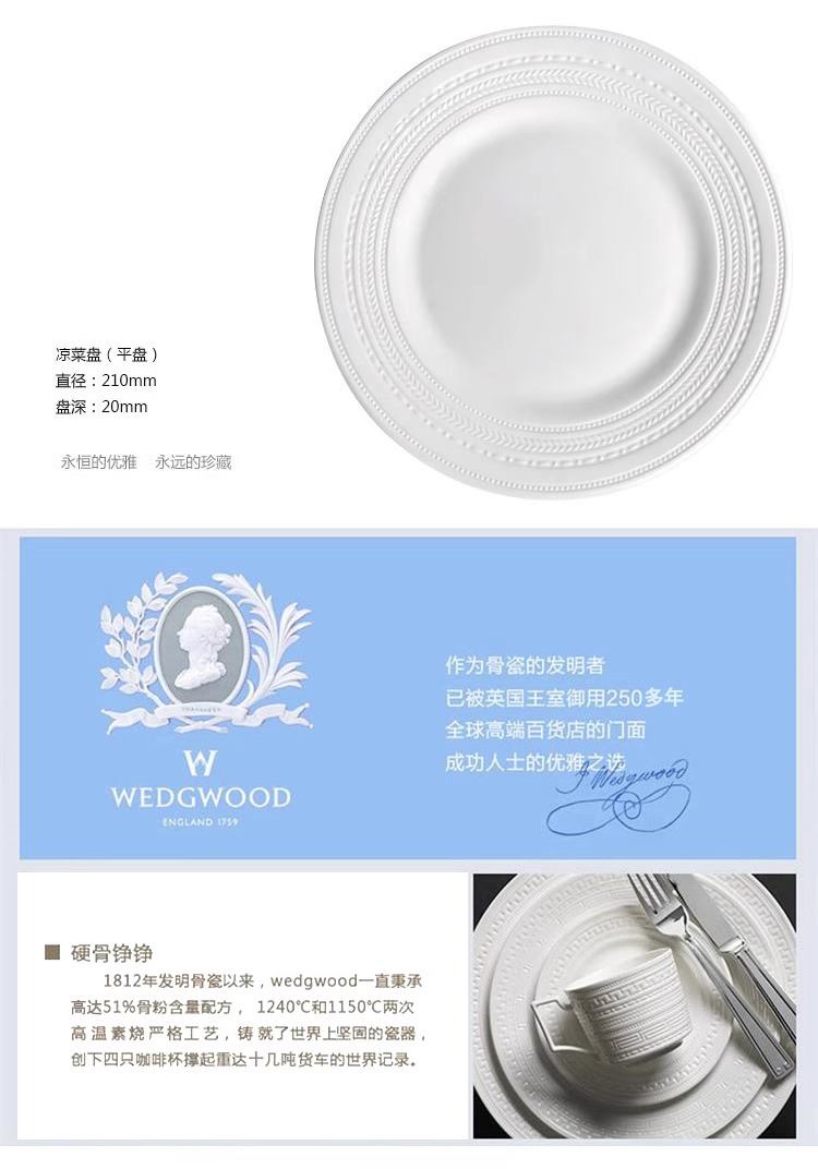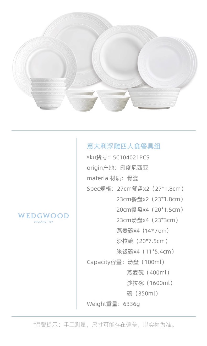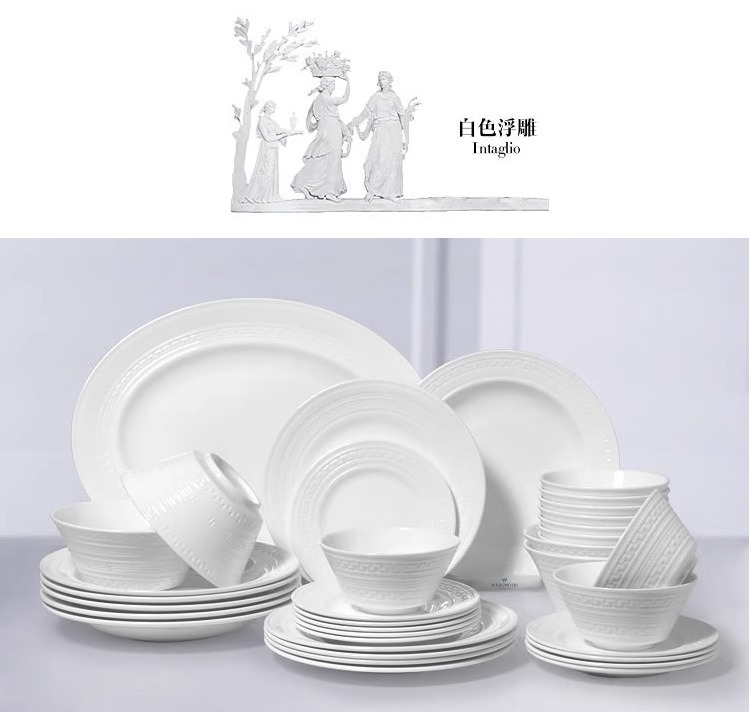 WEDGWOOD威基伍德intaglio意大利浮雕骨瓷中餐套装乔迁礼物威基伍德意大利浮雕四人餐具21件套