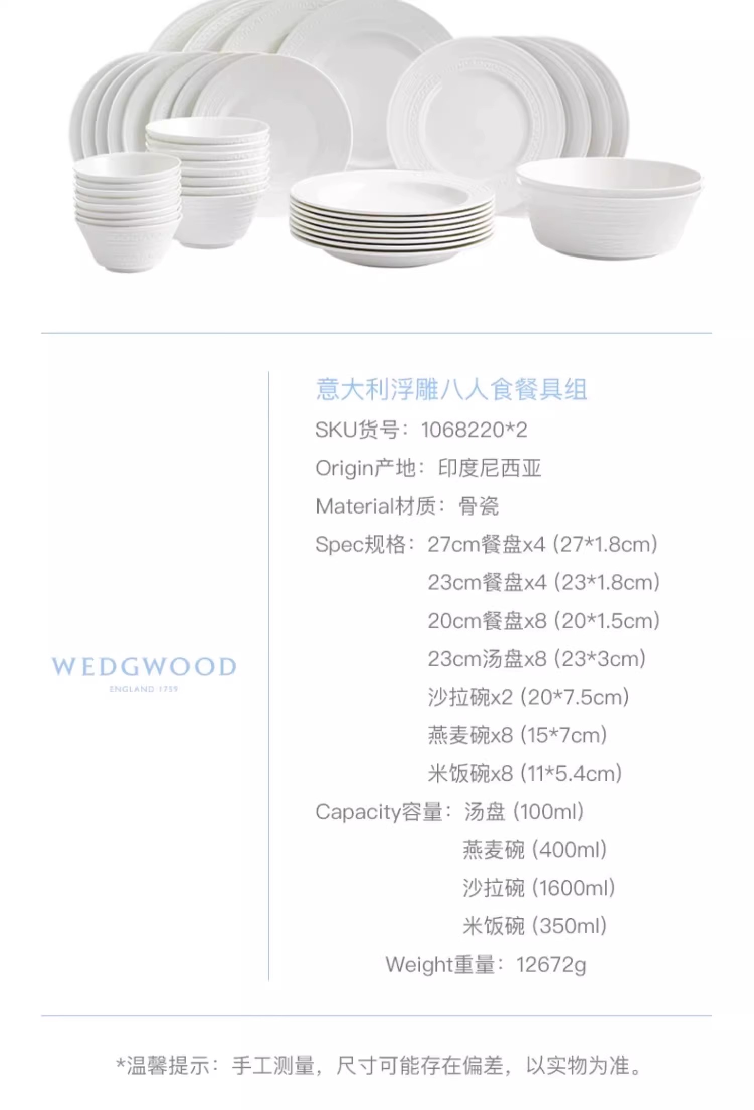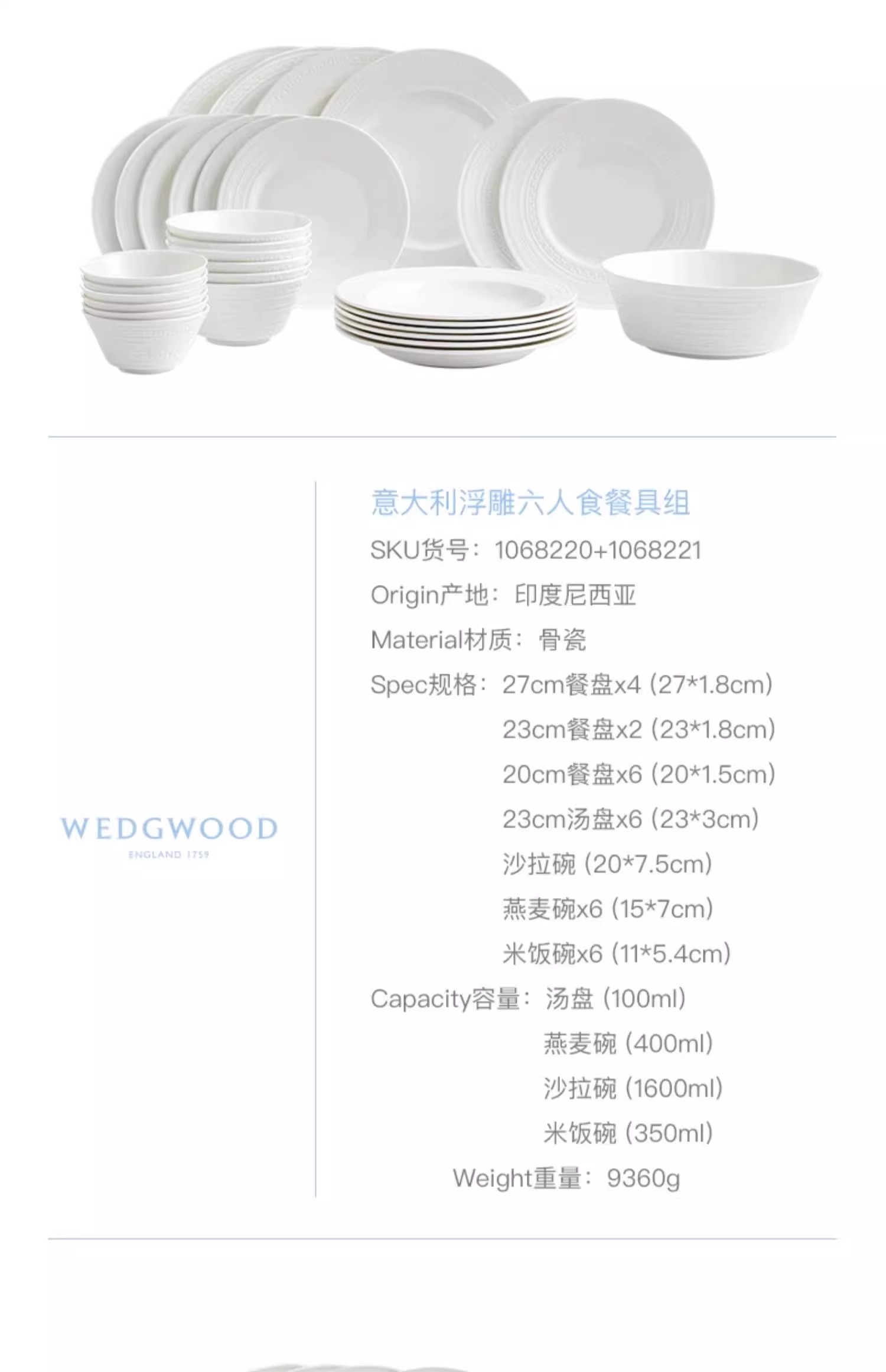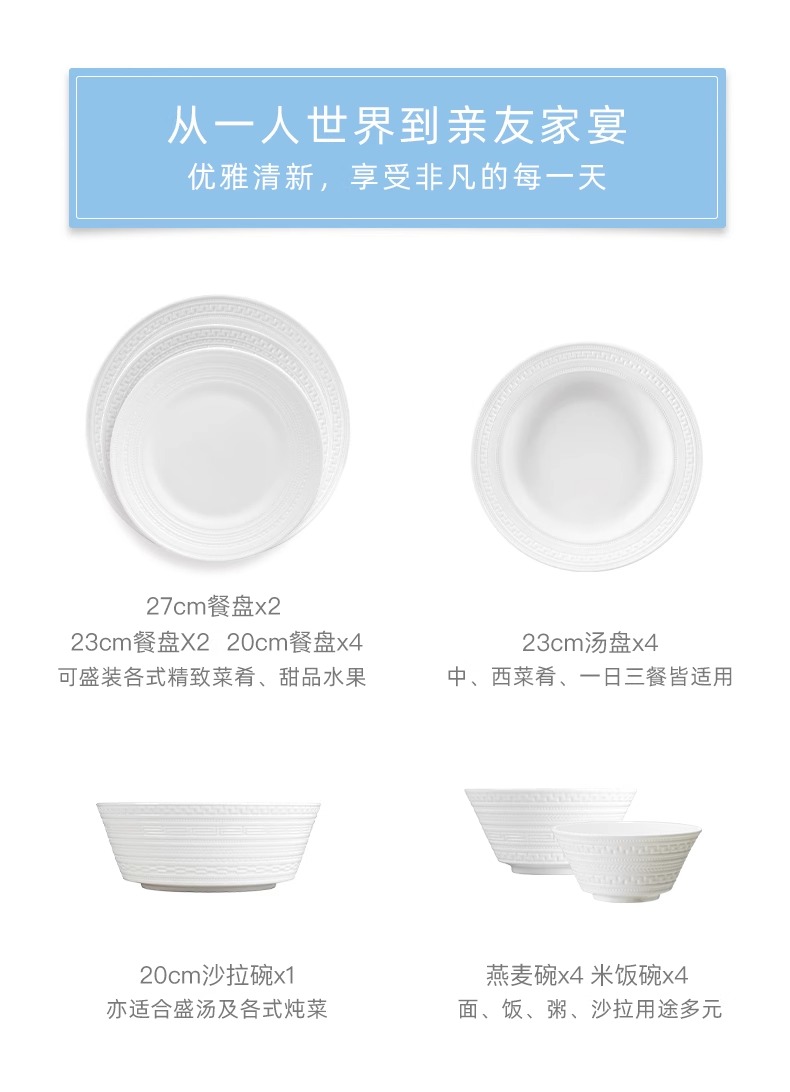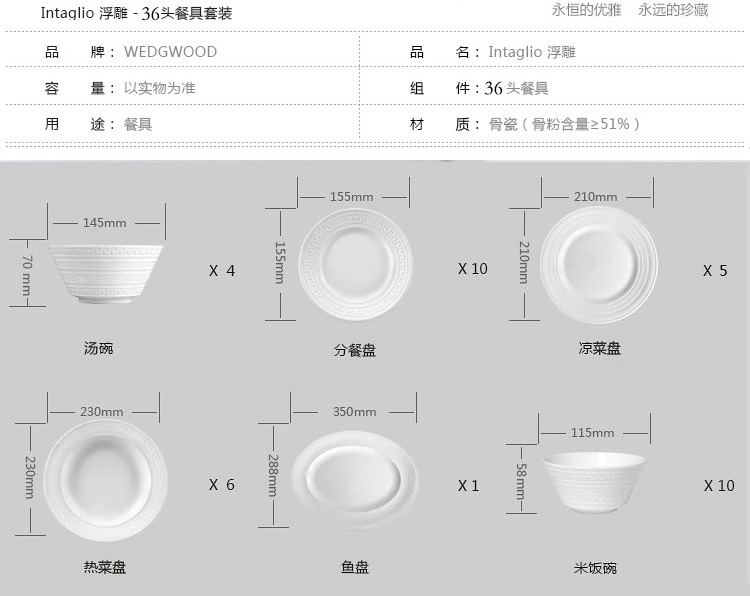 WEDGWOOD威基伍德intaglio意大利浮雕骨瓷中餐套装乔迁礼物威基伍德意大利浮雕四人餐具21件套