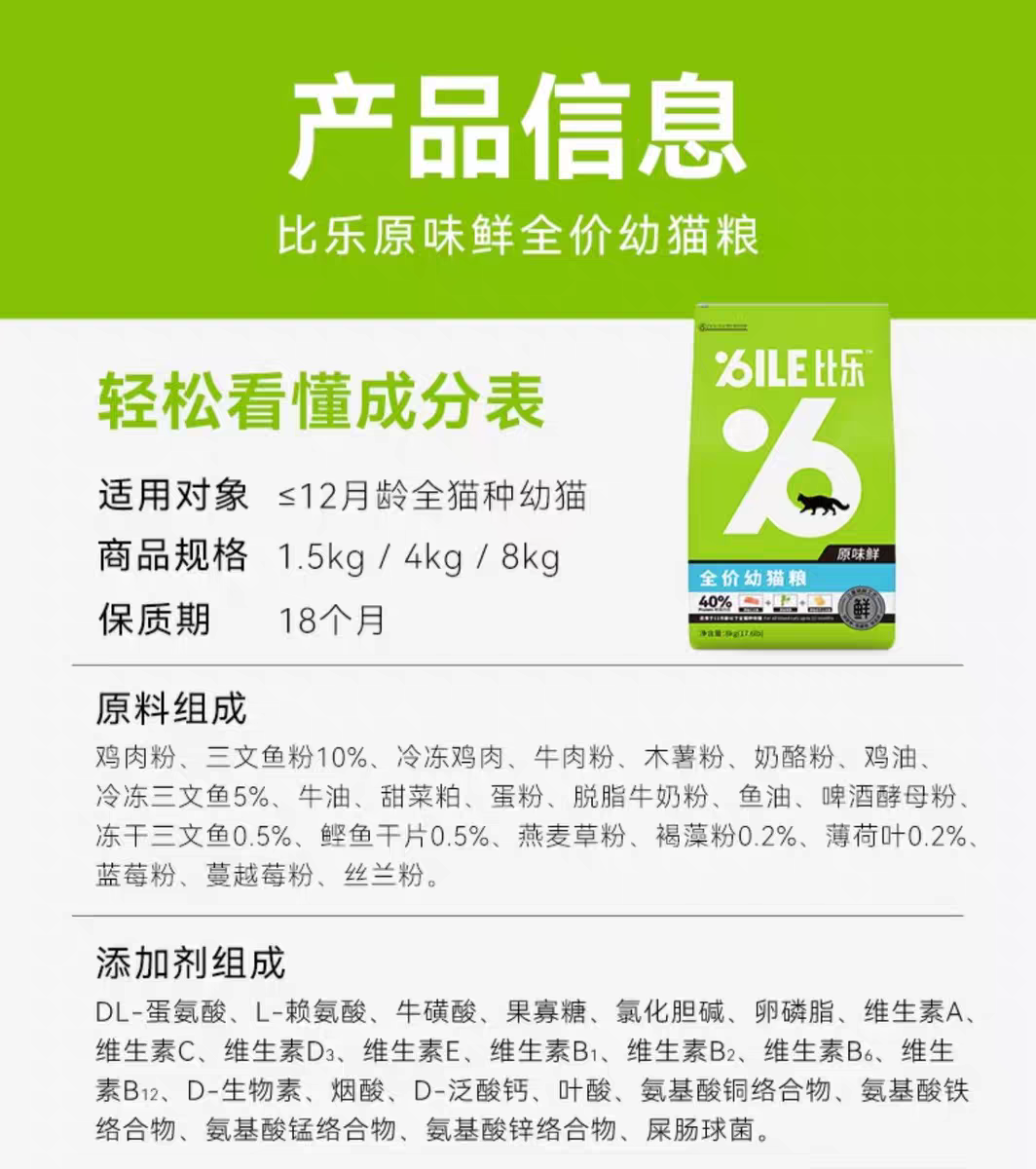 比乐 原味 幼猫粮1.5kg/8kg