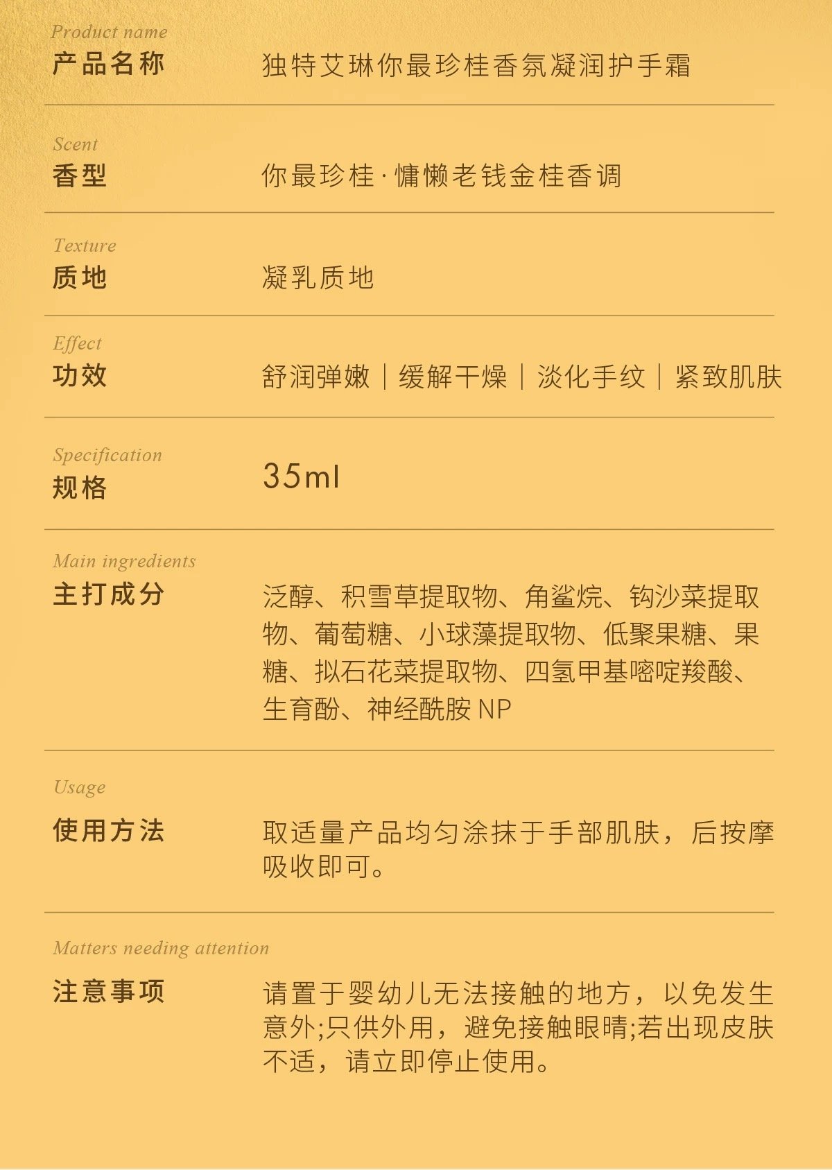 【你最珍桂】 DearIrean 独特艾琳季节限定金桂花香你最珍桂凝润护手霜35ml 护手霜手护礼盒