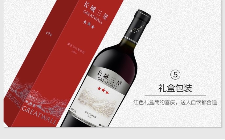长城三星美乐干红葡萄酒(礼盒) 750ml*6瓶