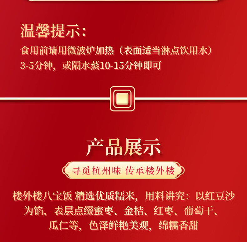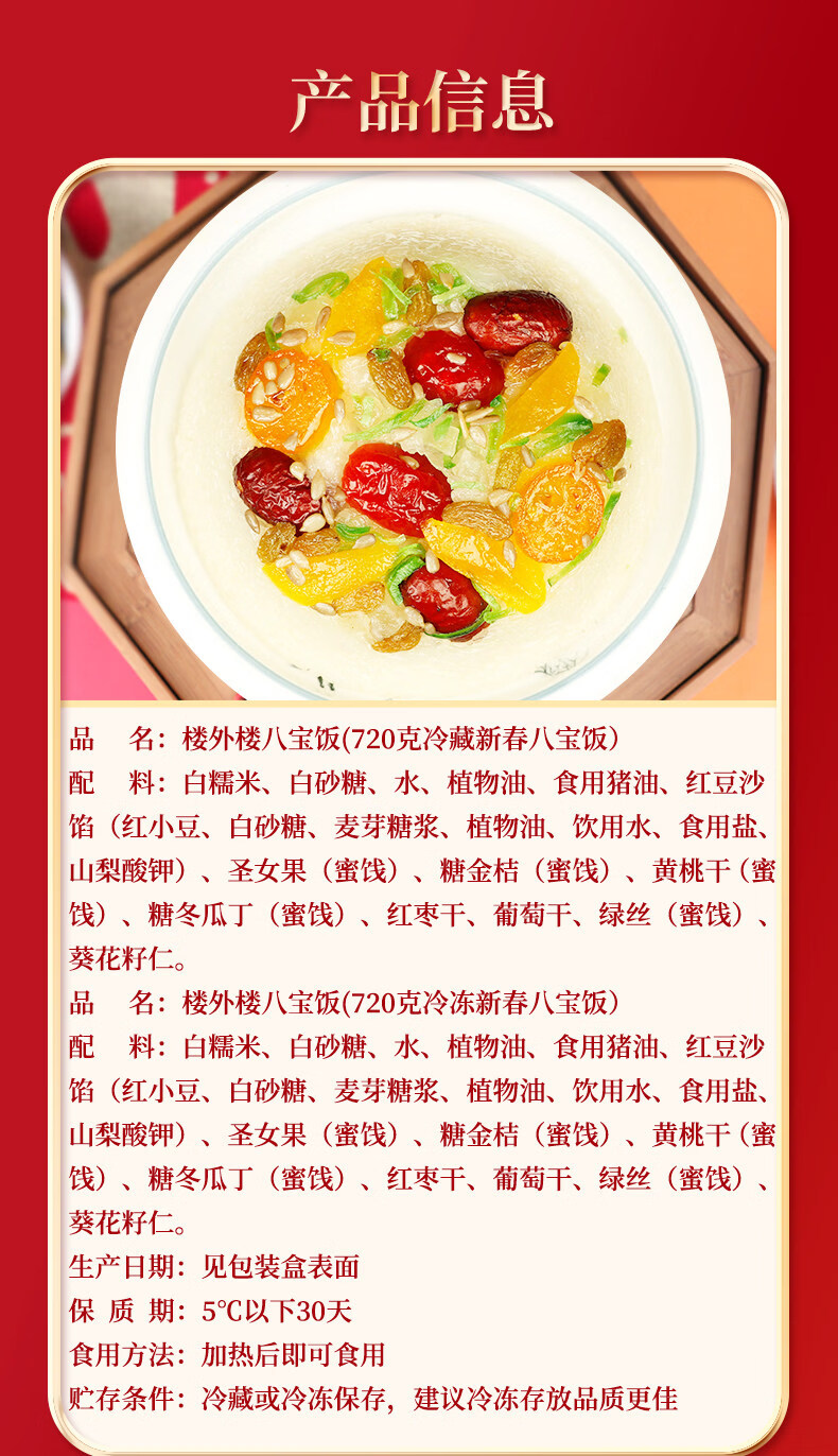 楼外楼八宝饭720g(冷冻)需蒸热后食用