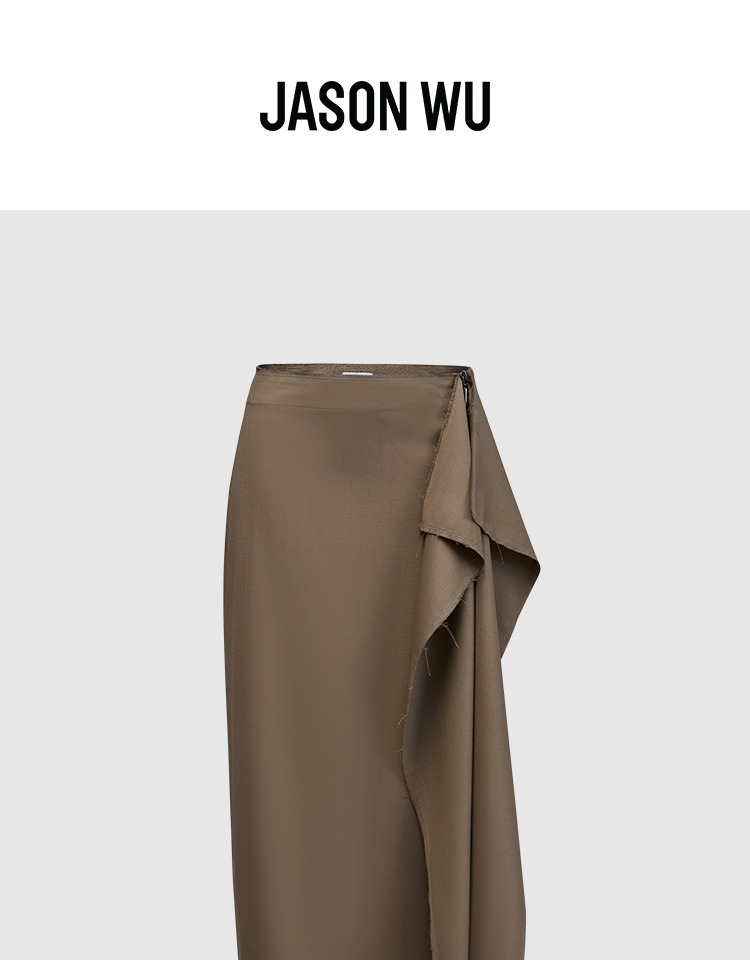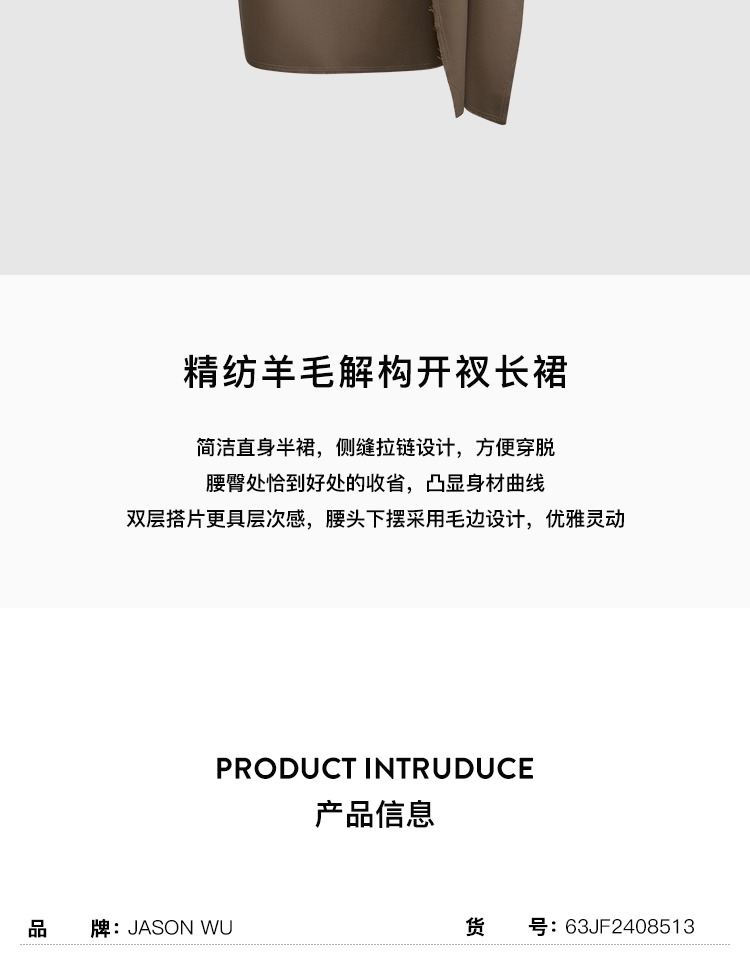 【JASON WU】25年新款日常通勤精纺羊毛解构开衩长裙
