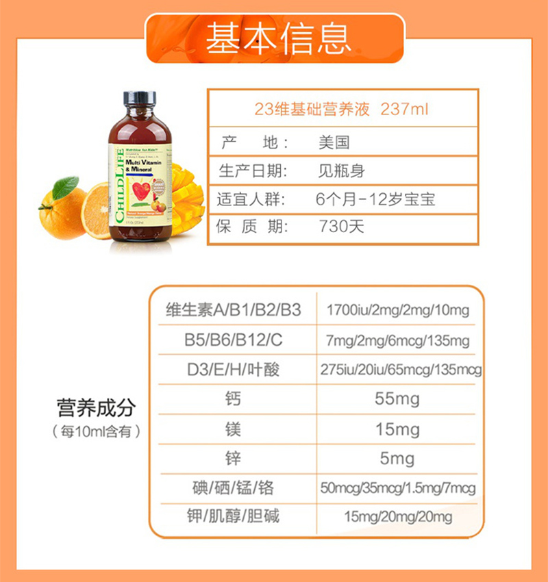 美国童年时光 23种维生素237ml