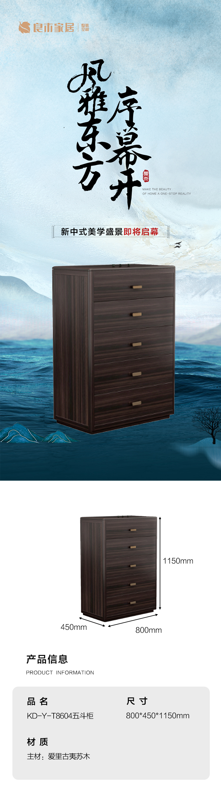 【新中式五斗柜KD-Y-T8604】客厅/书房/卧房/黑檀/五斗柜