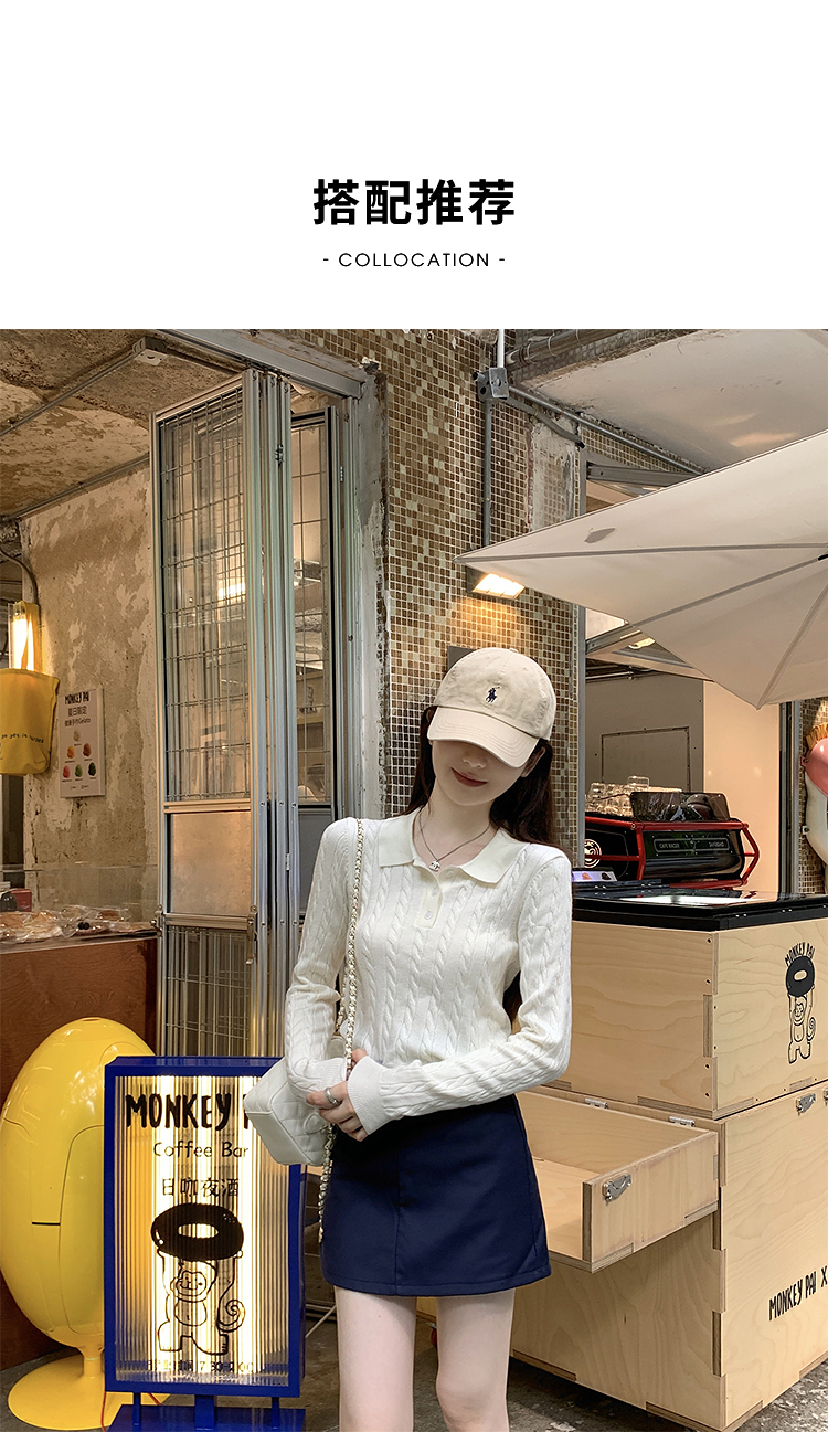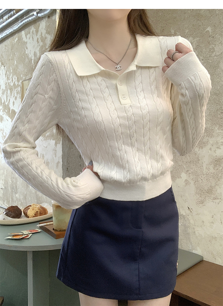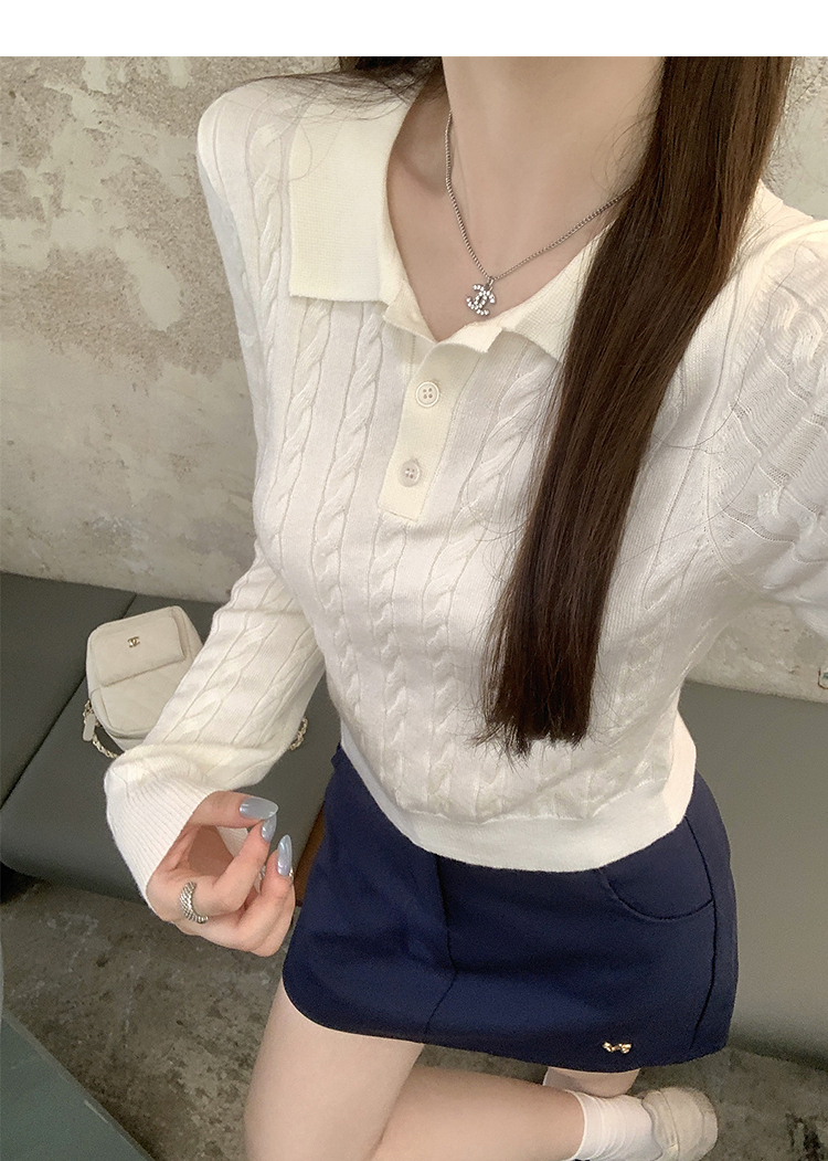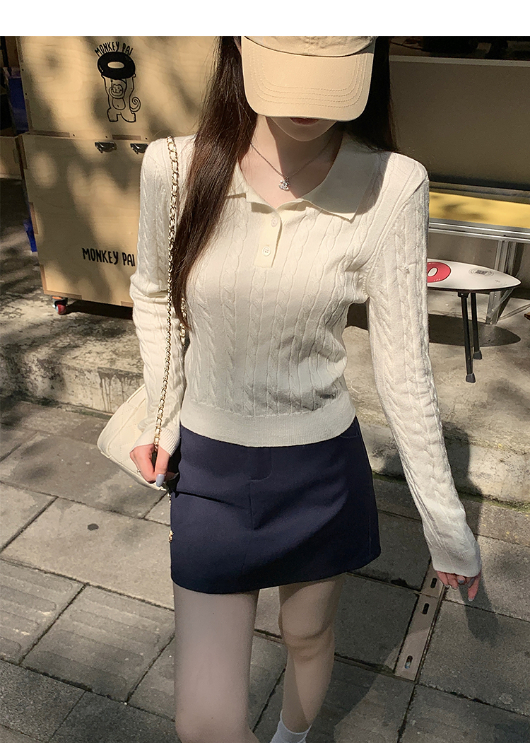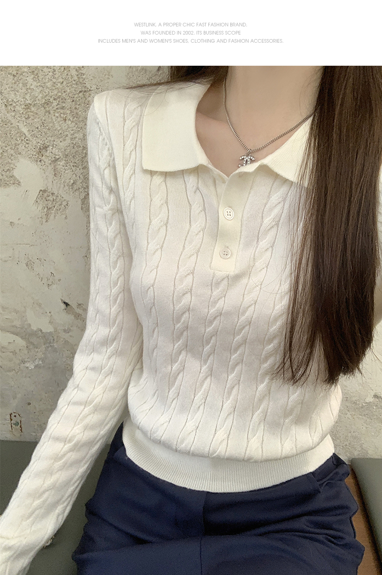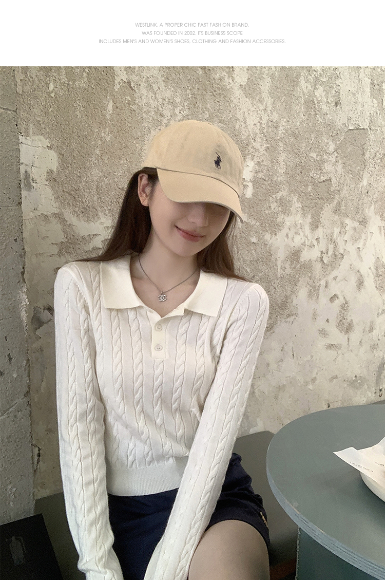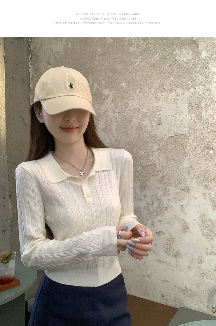 西遇修身长袖针织衫女2025年秋季新款复古麻花内搭灰色短款毛衣SS051503