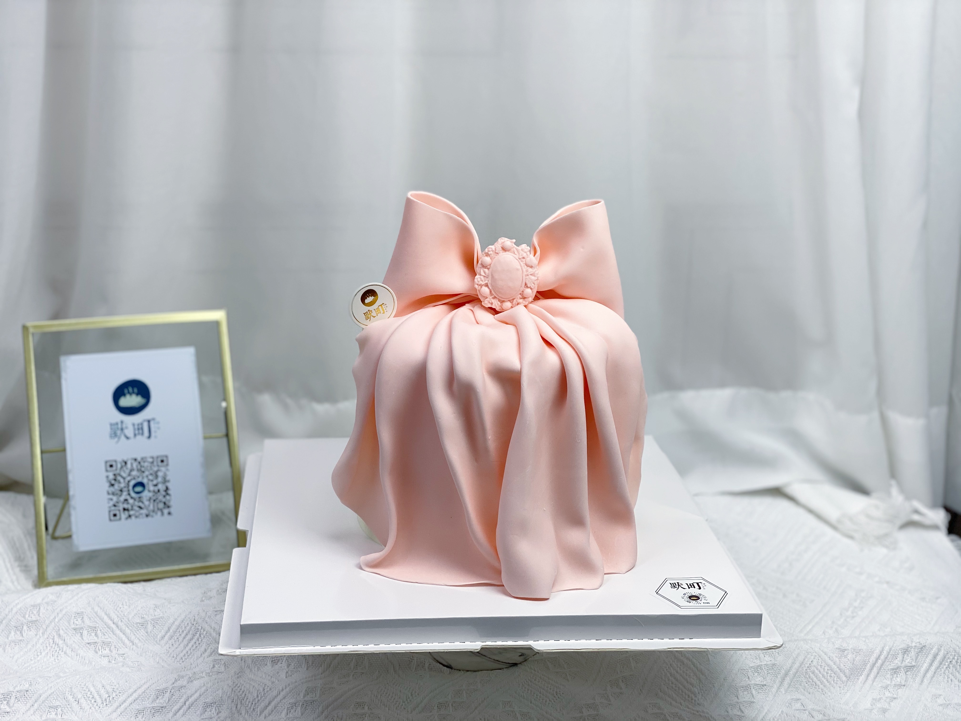 法式女神范&纯粉色翻糖大蝴蝶结蛋糕(图片是6寸)