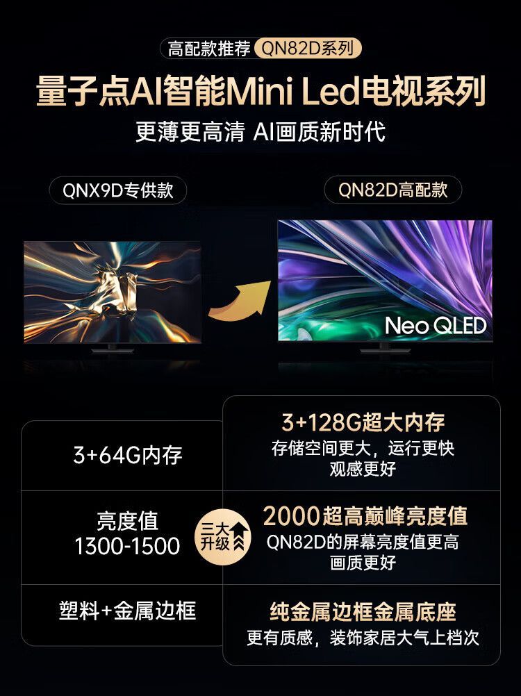 【国补15%】三星电视 QA85QN82DAJXXZ miniled量子点4k超高清平板液晶电视机