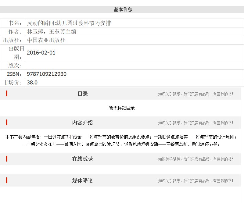 灵动的瞬间幼儿园过渡环节巧安排【中国农业出版社官方正版】