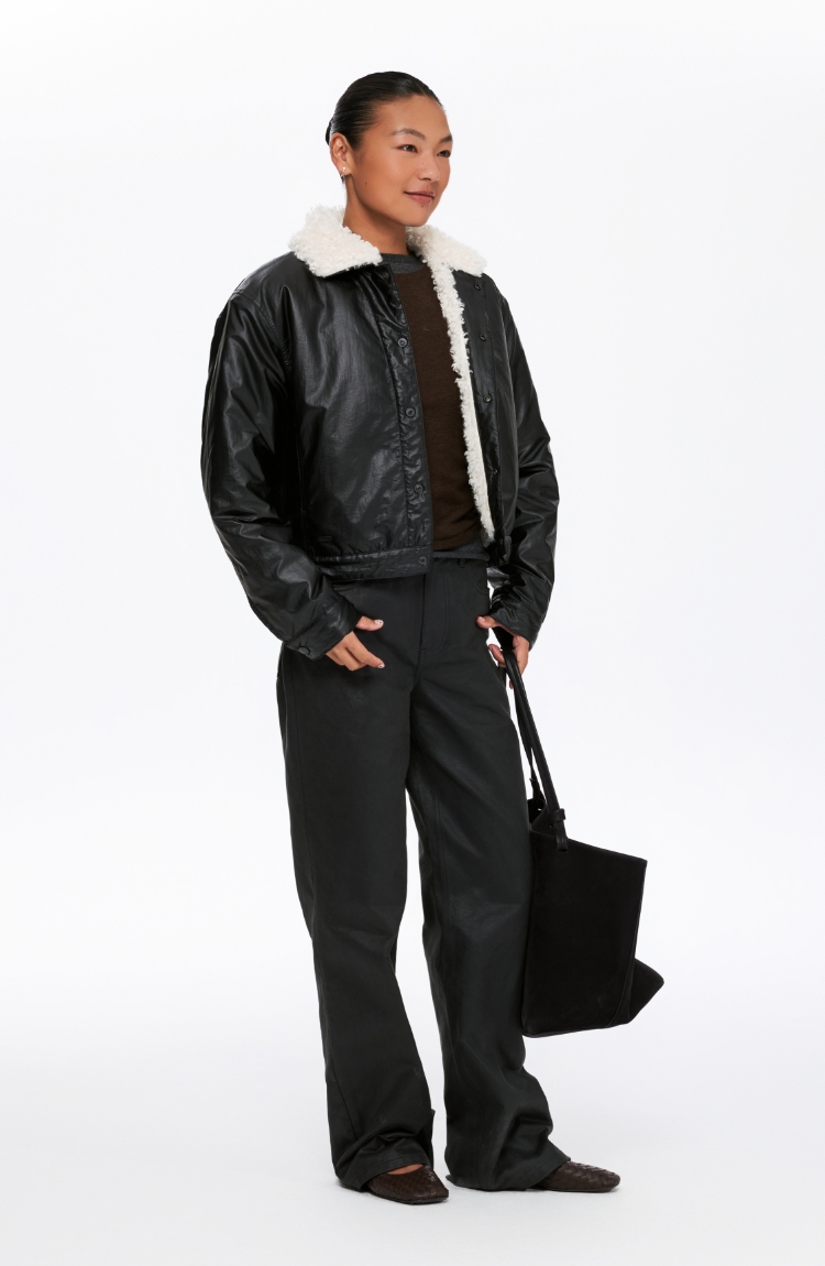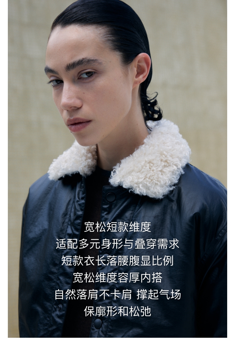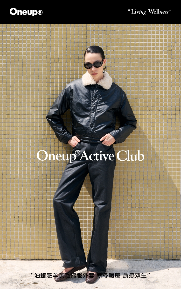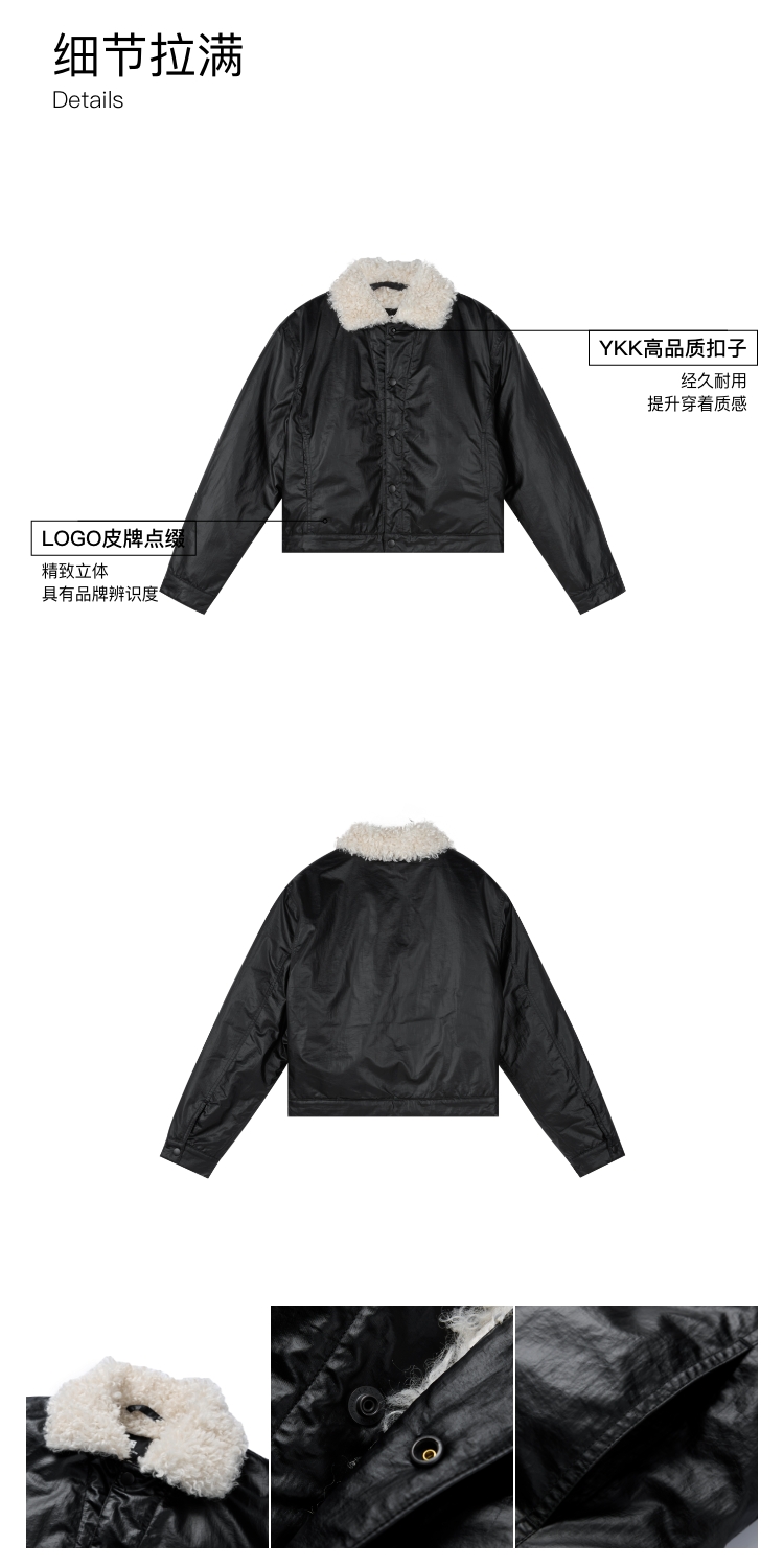 oneup油蜡感羊羔毛棉服外套