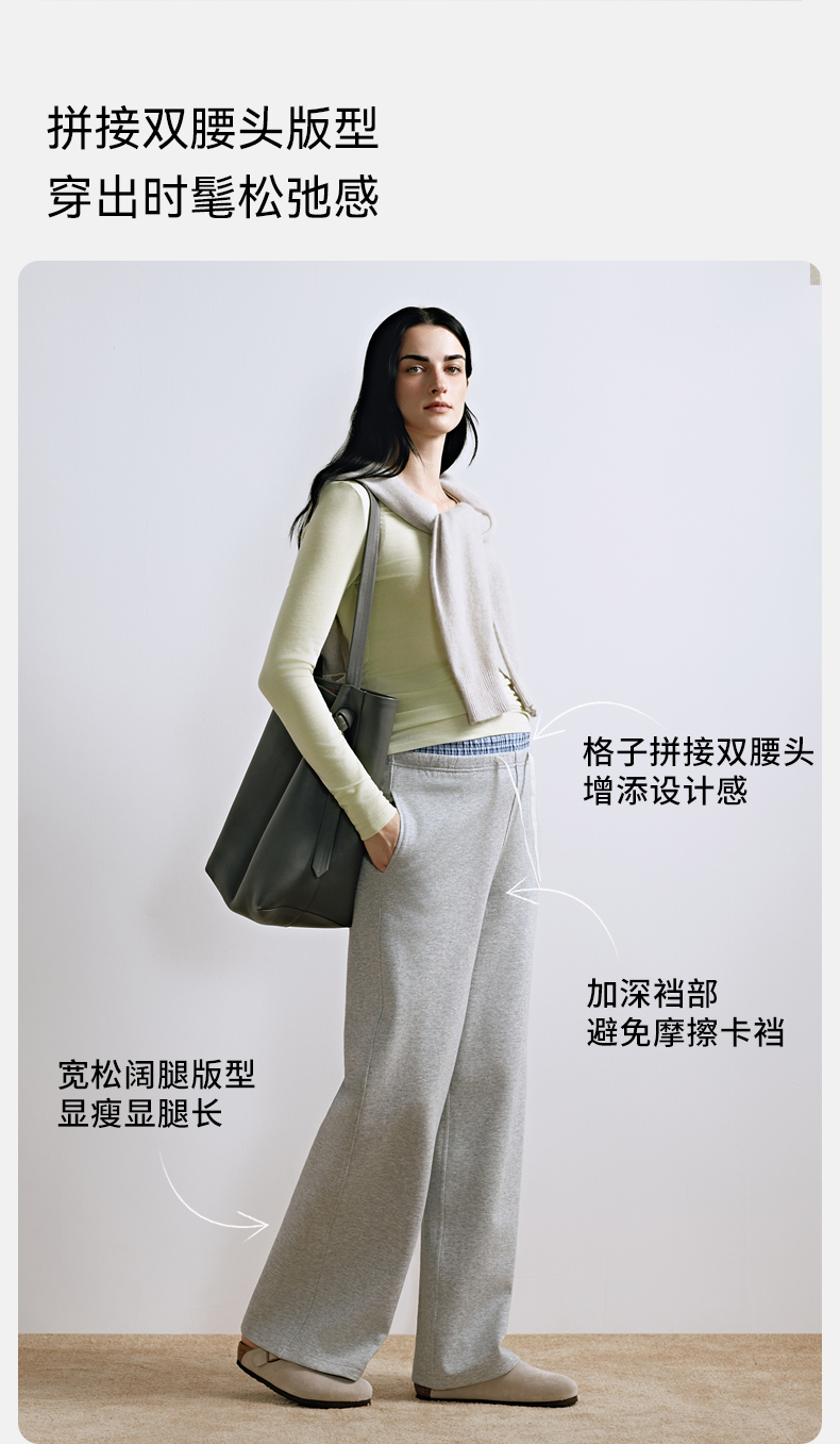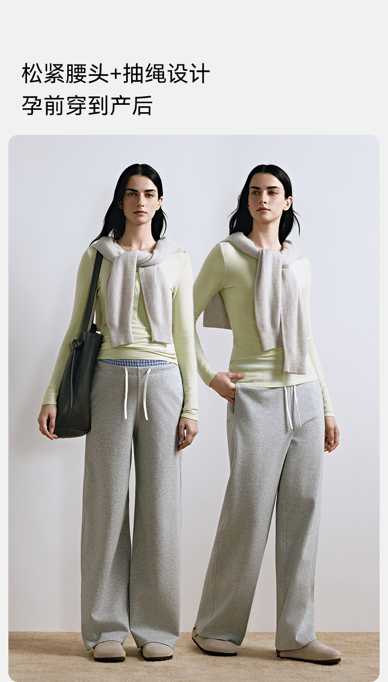 【限时会员价】嫚熙孕妇阔腿裤秋款可调节双腰头设计感格子全孕期休闲裤2025新款