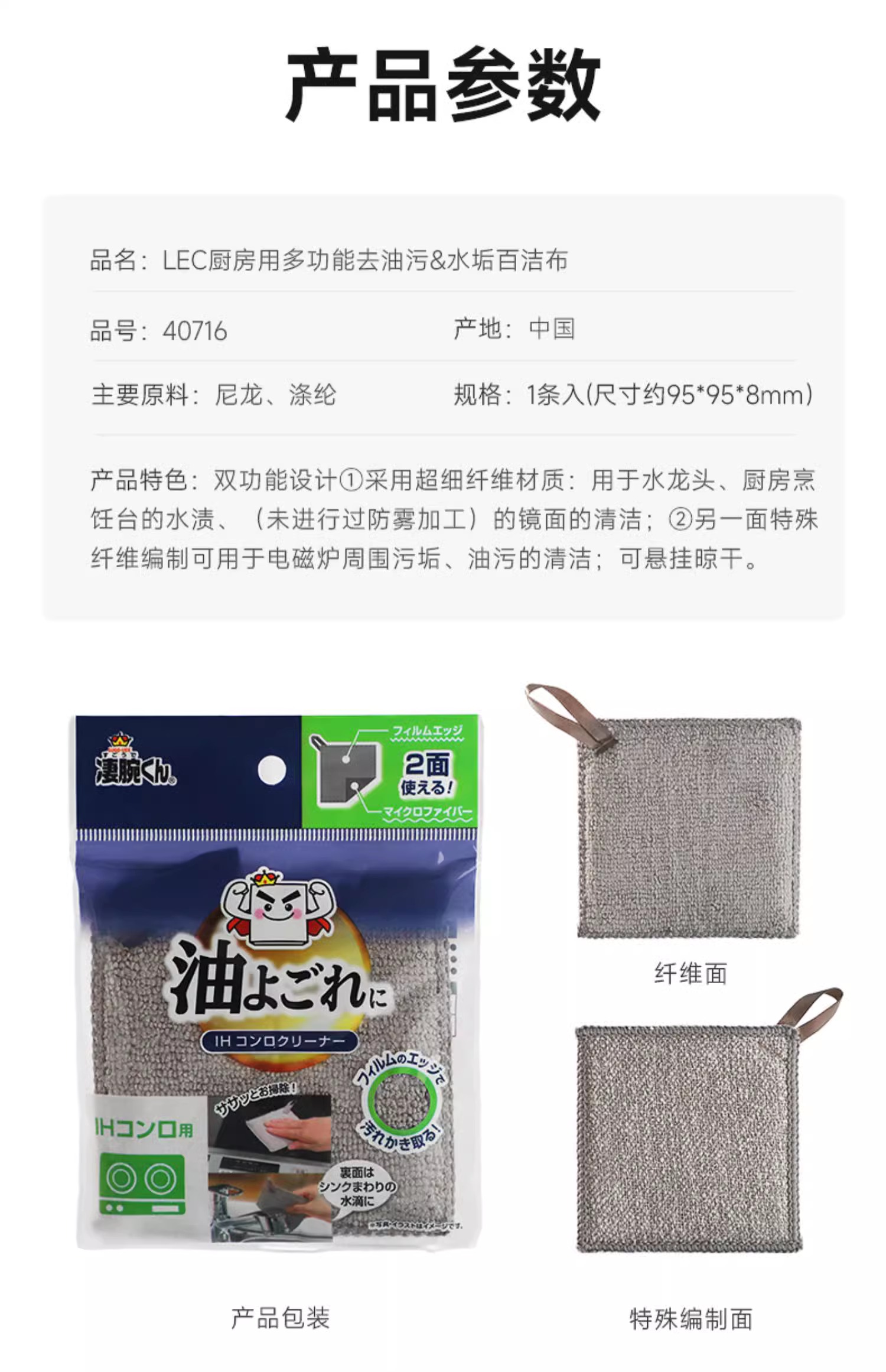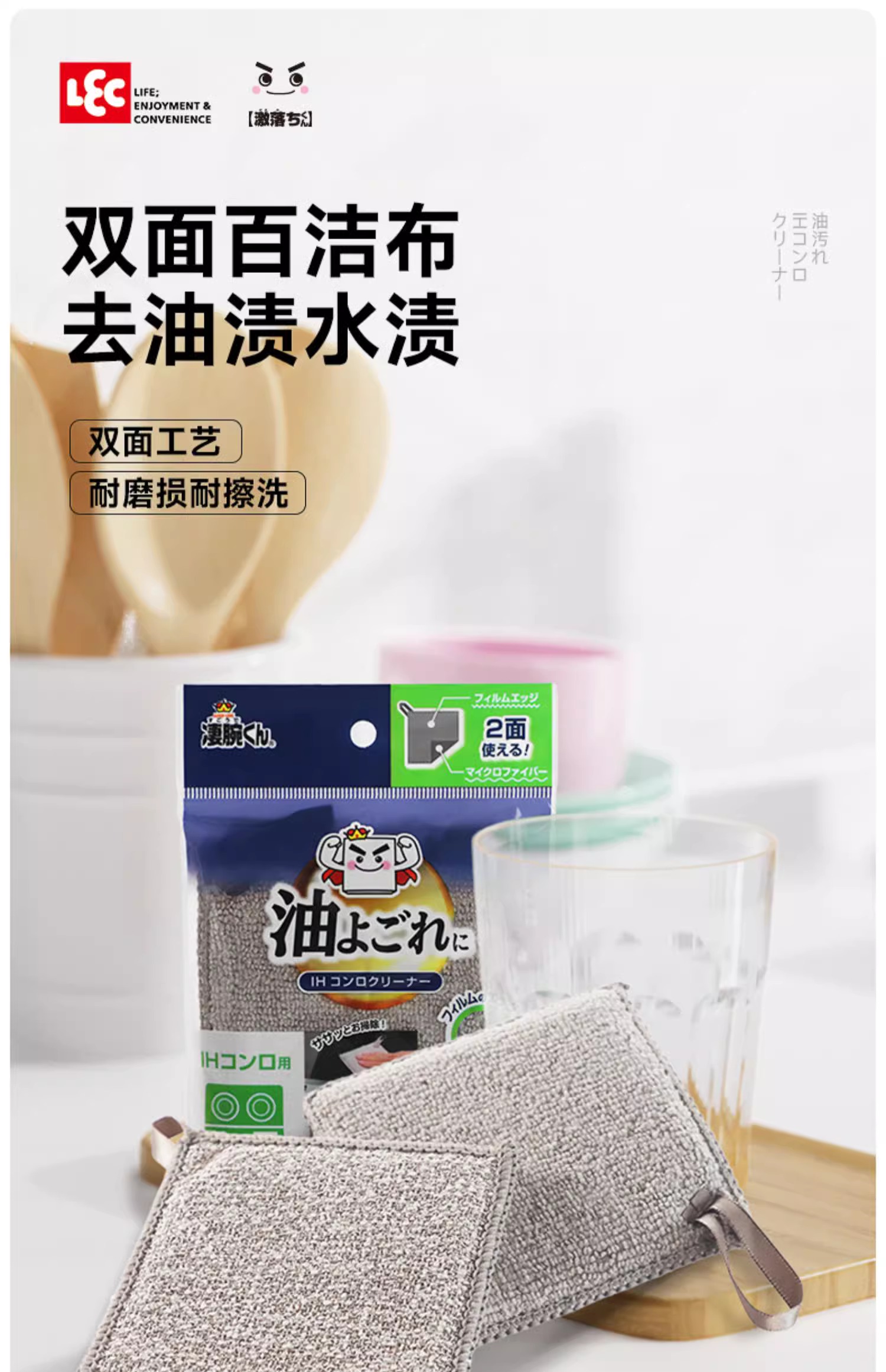 LEC激落君油污炉灶清洁海绵厨房百洁布去油污双面清洁抹布