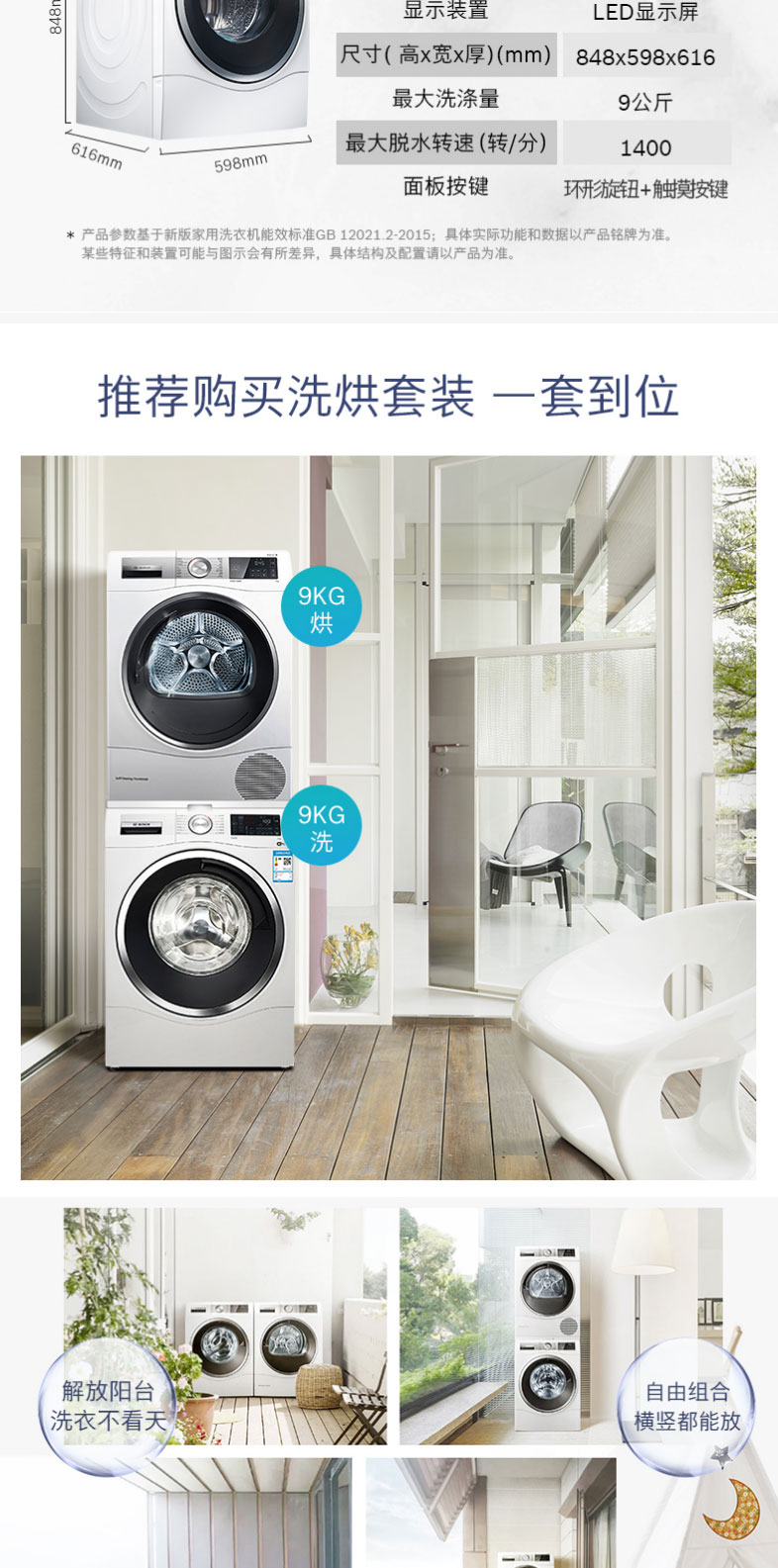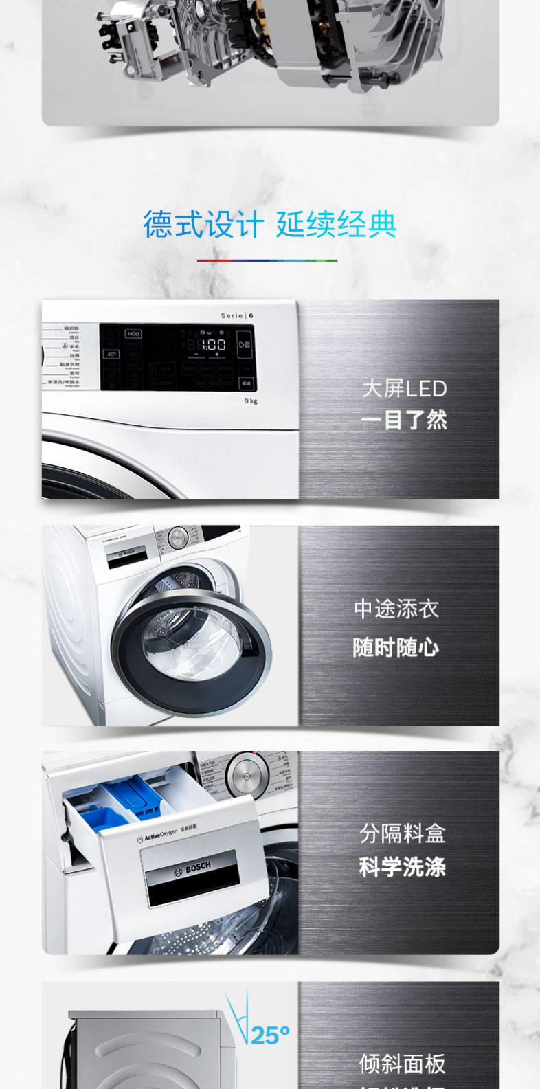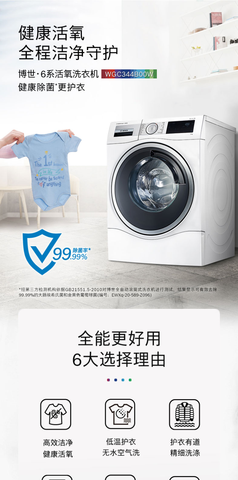 博世(BOSCH) 【活氧空气洗】9公斤变频家用(白色)全自动滚筒洗衣机XQG90-WGC344B00W