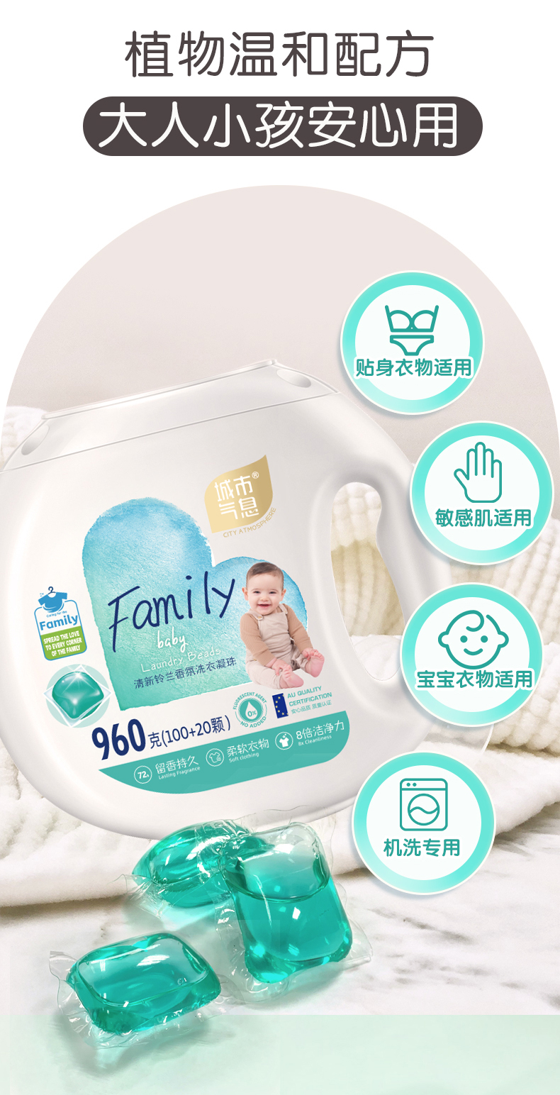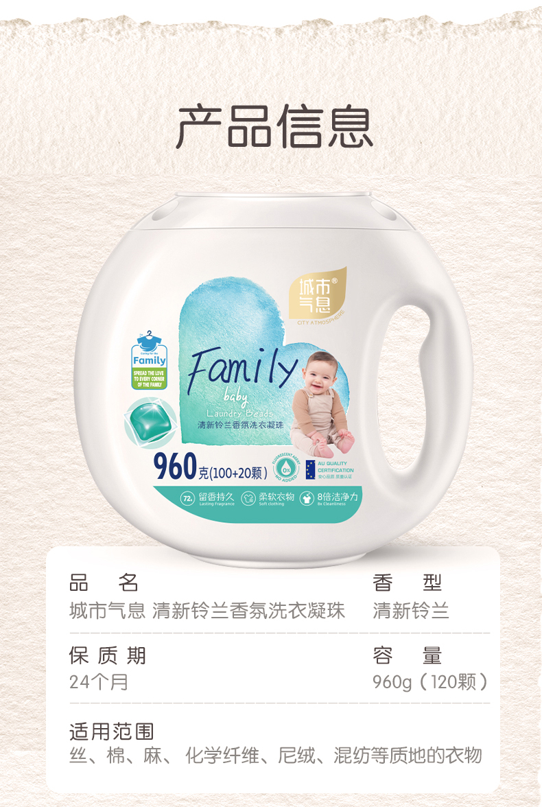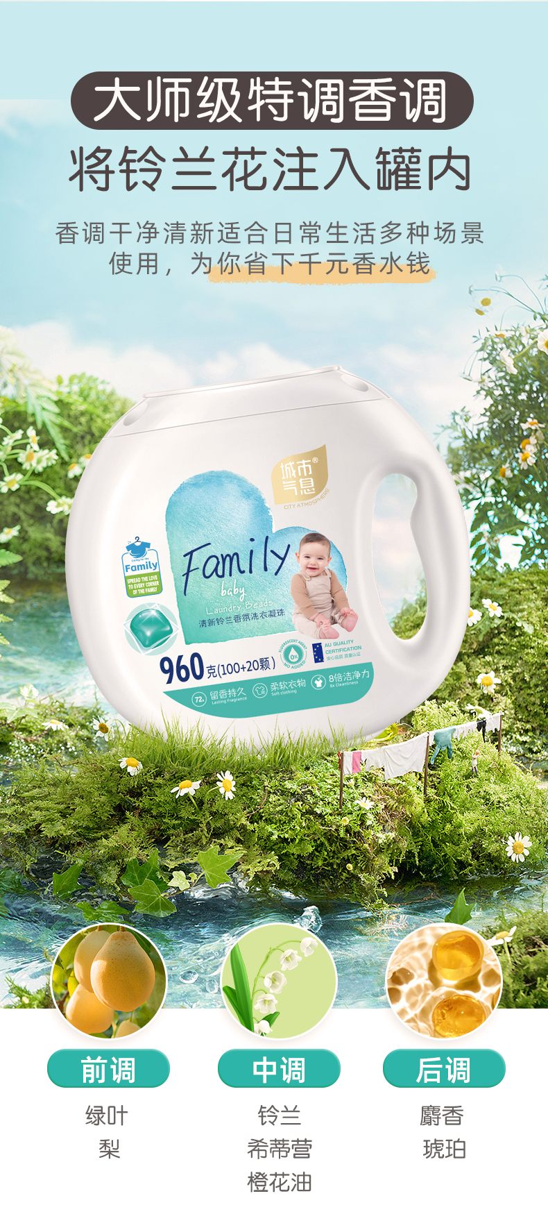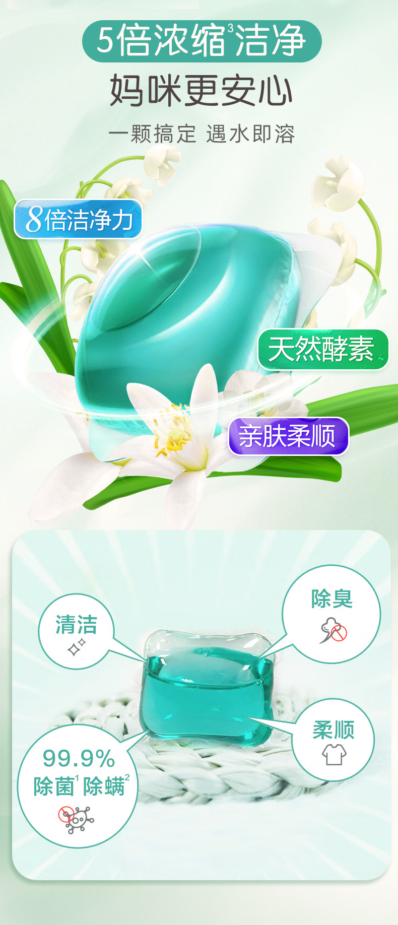 【到手320颗洗衣凝珠】城市气息清新铃兰花洗衣凝珠,高倍凝缩精华,一颗搞定,拍1单用1年~0添加荧光剂,8倍洁净力,高浓缩无水配方,更适合有娃家庭的洗衣凝珠