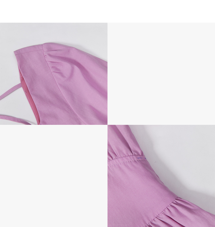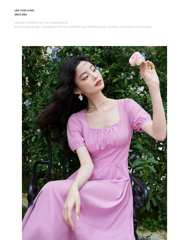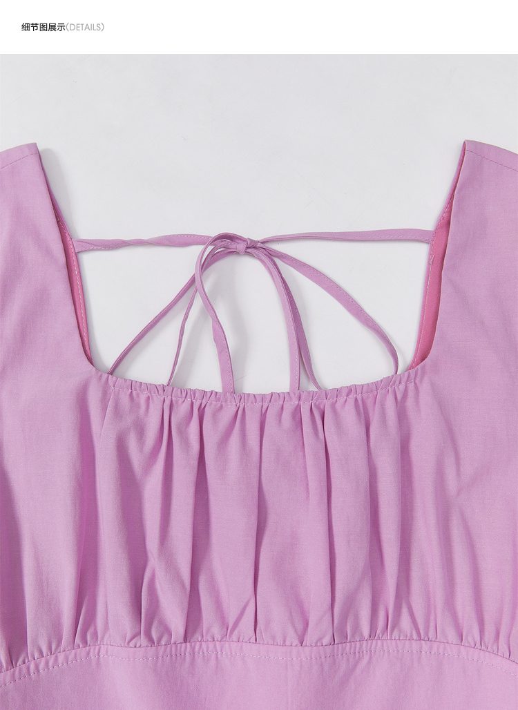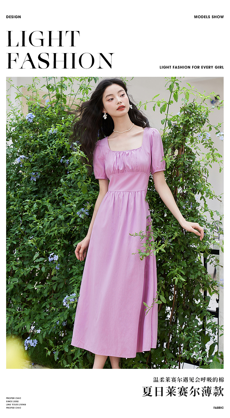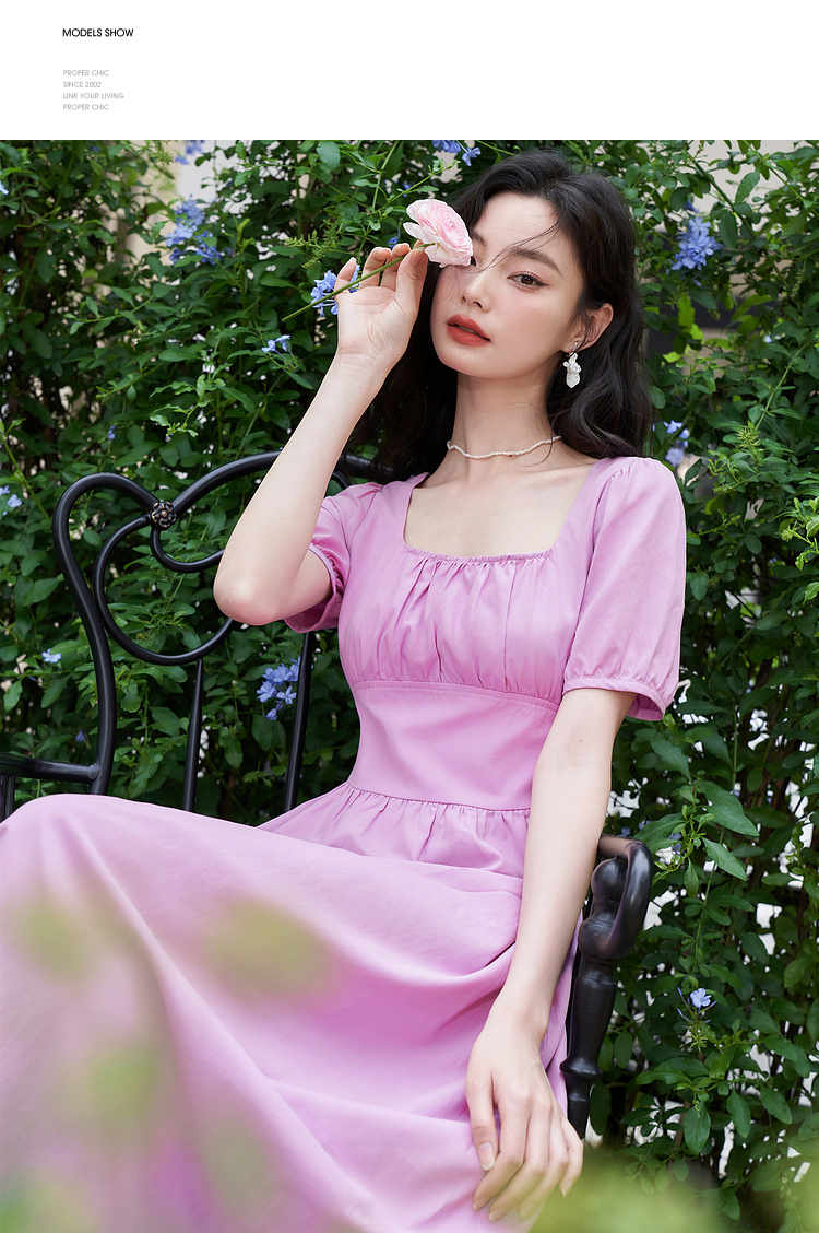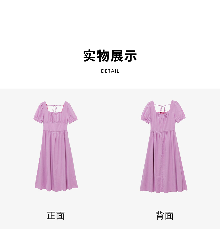 法式浪漫文艺泡泡袖连衣裙女夏季收腰方领短袖连衣裙V1241053
