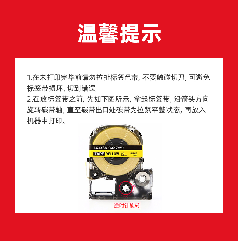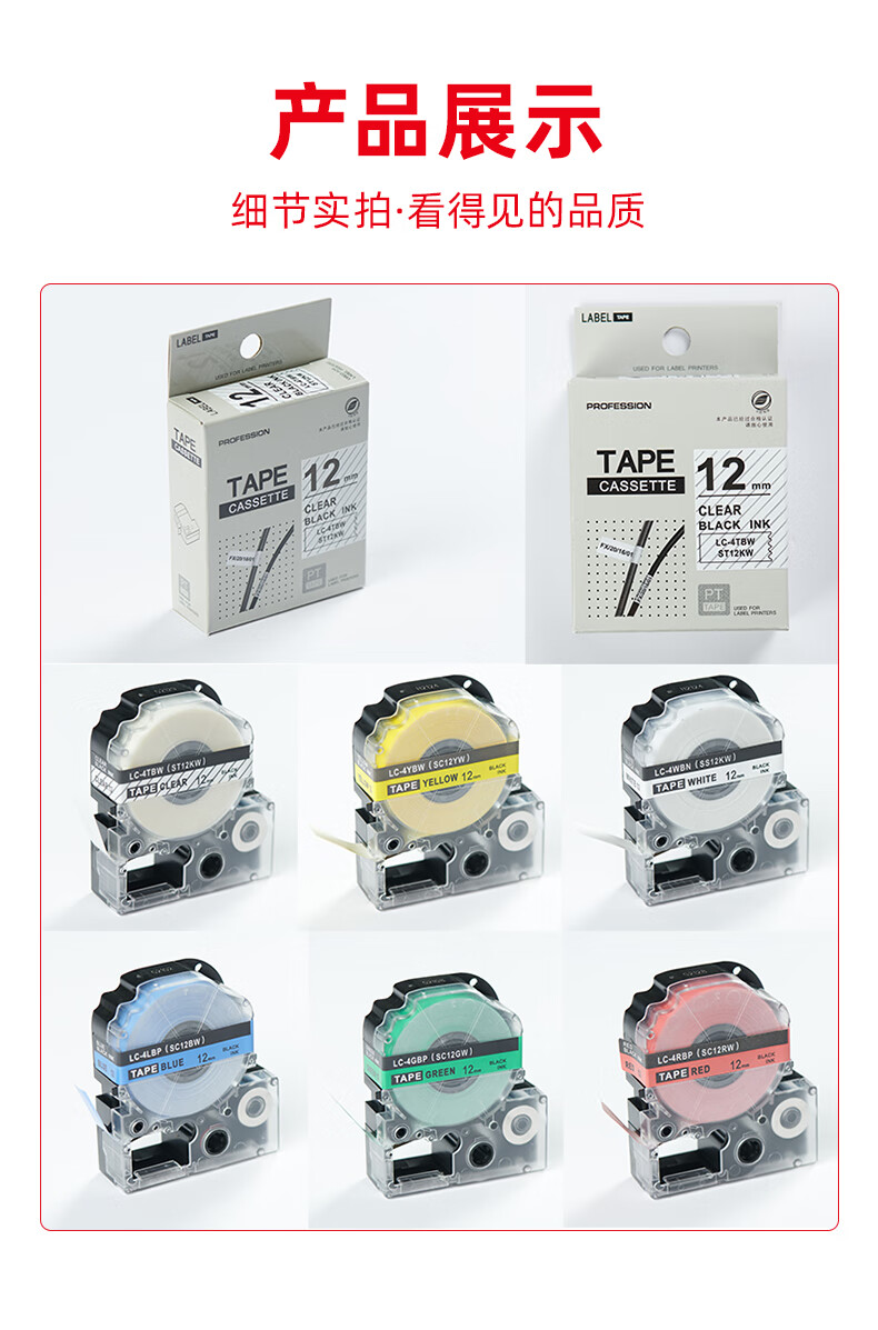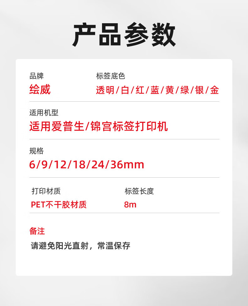 绘威 SC12YW标签带 不干胶标签纸标签六色色带覆膜标签 标签机色带适用爱普生/锦宫标签打印机 12mm*8m/12mm*8m/18mm*8m24mm*8m/36mm*8m