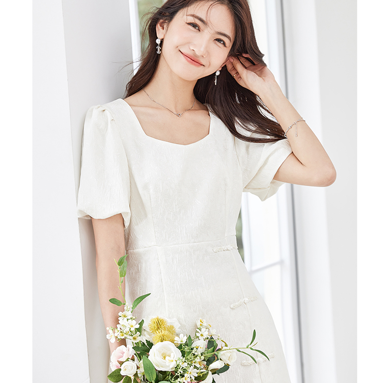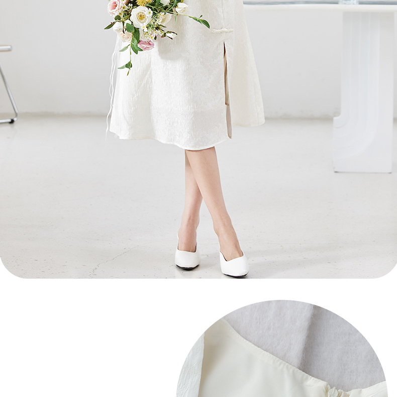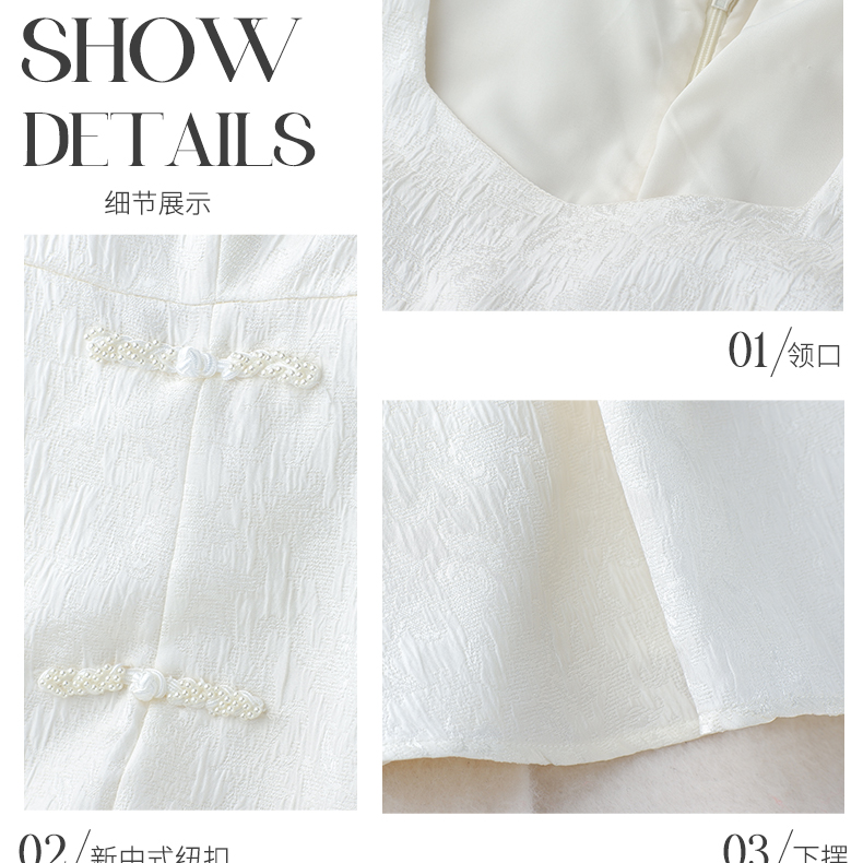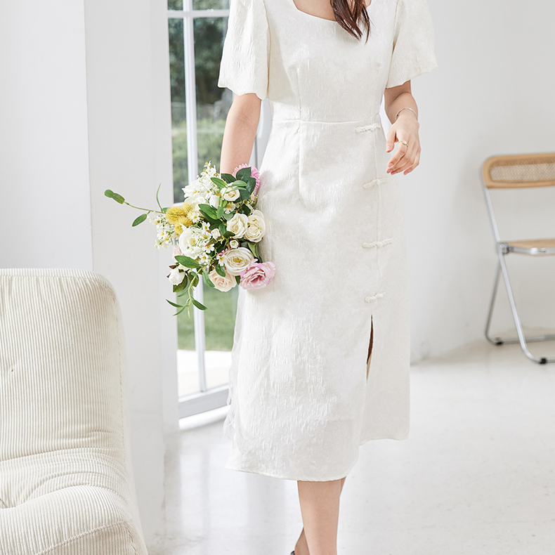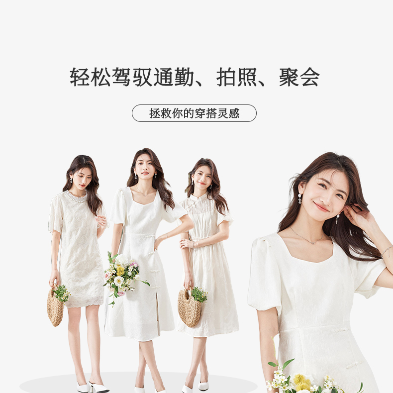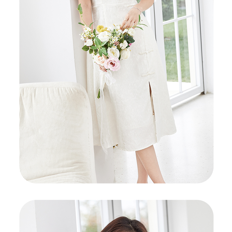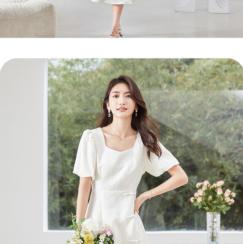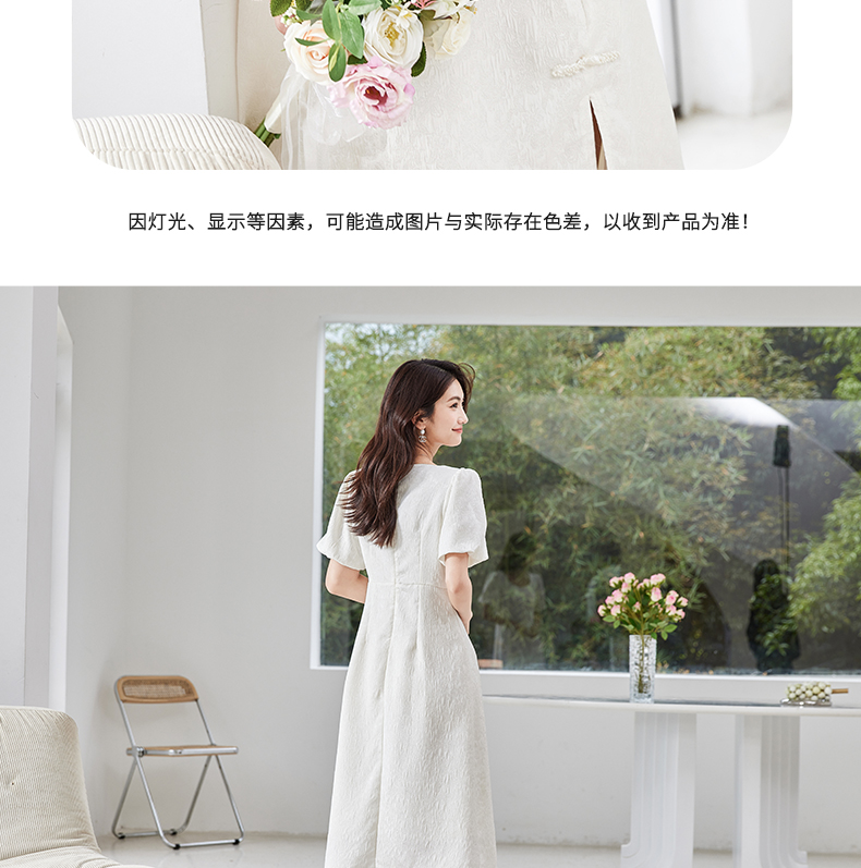 VICTORIA&VERA夏季新款“诗意盎然”系列新中式盘扣装饰宽领收腰设计师版女式连衣裙中长款