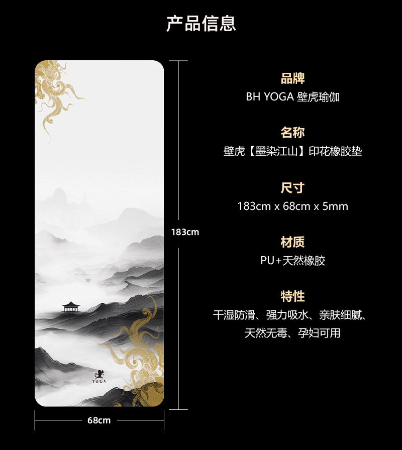 壁虎新款【印花垫-墨染江山】天然橡胶印花瑜伽垫【5天发货】