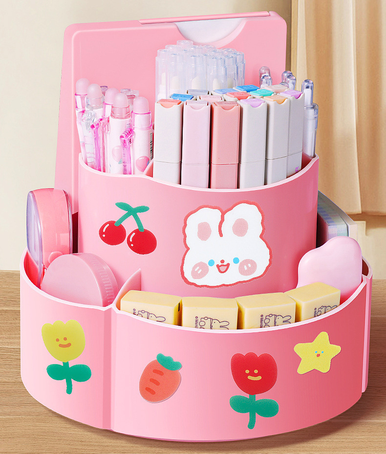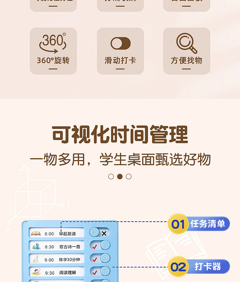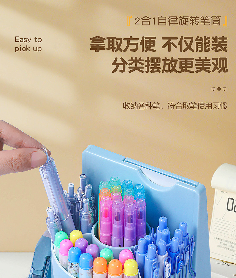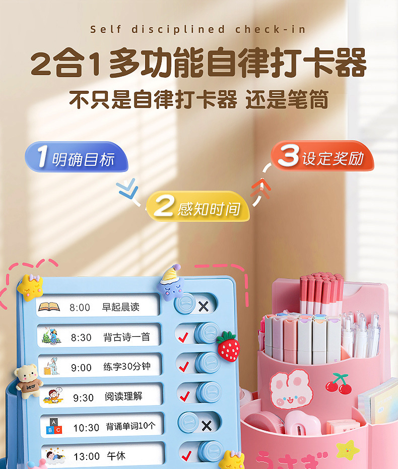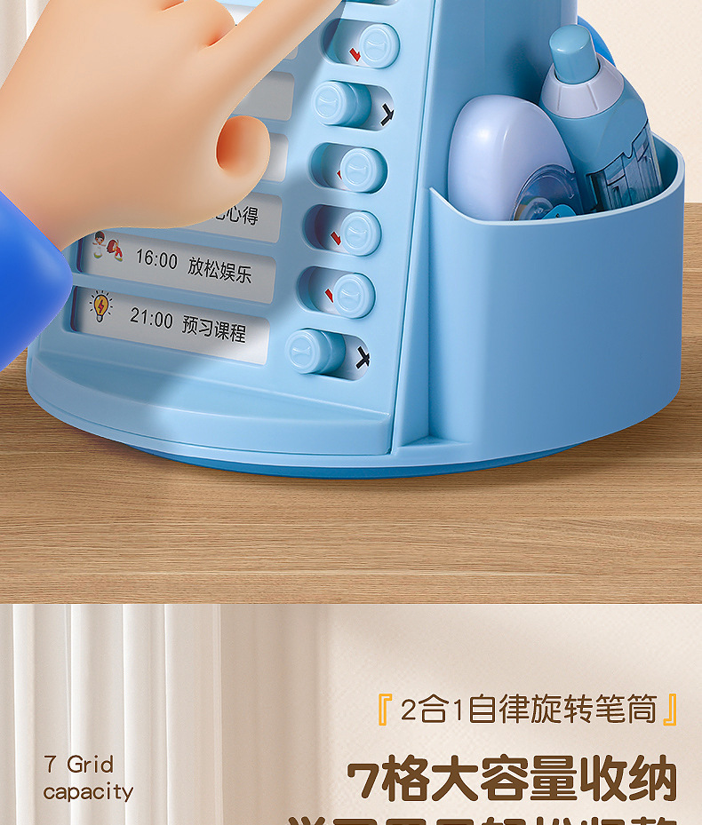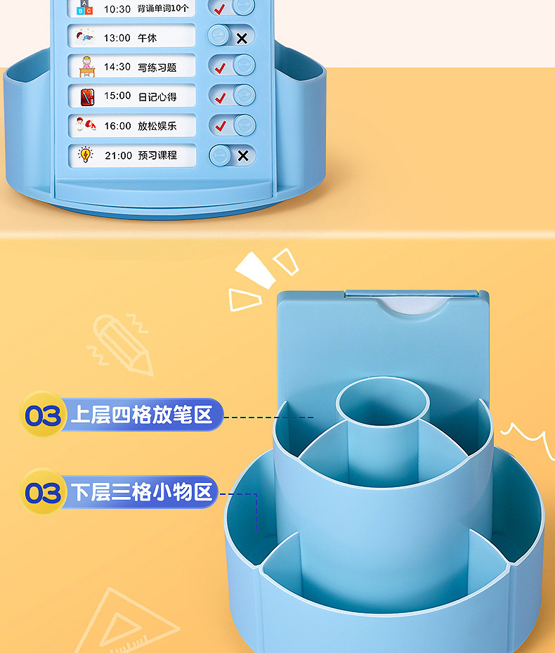 【带收纳自律神器🔥】旋转笔筒, 二合一笔筒收纳盒 宝宝打卡器 ,多功能大容量学习计划表,2合1旋转笔筒📚+打卡计划表🕒,培养学习好习惯,从早到晚高效安排!✨
