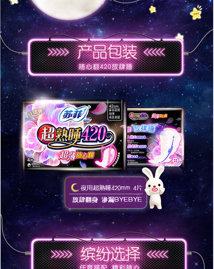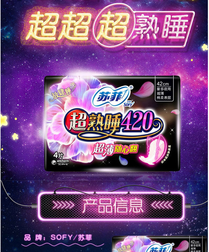 苏菲超熟睡超薄随心翻棉质夜用4片 420cm