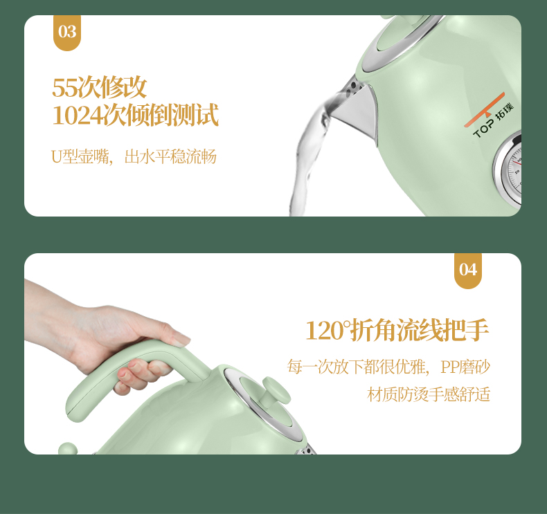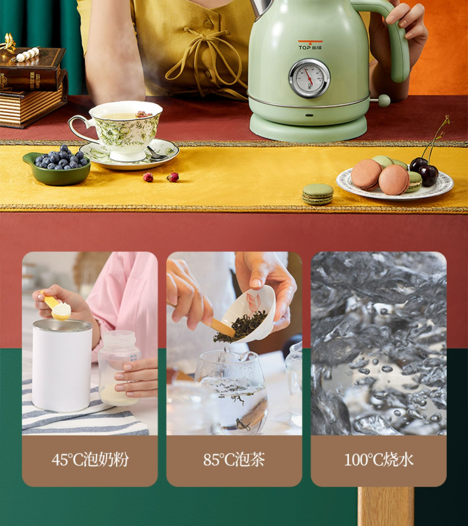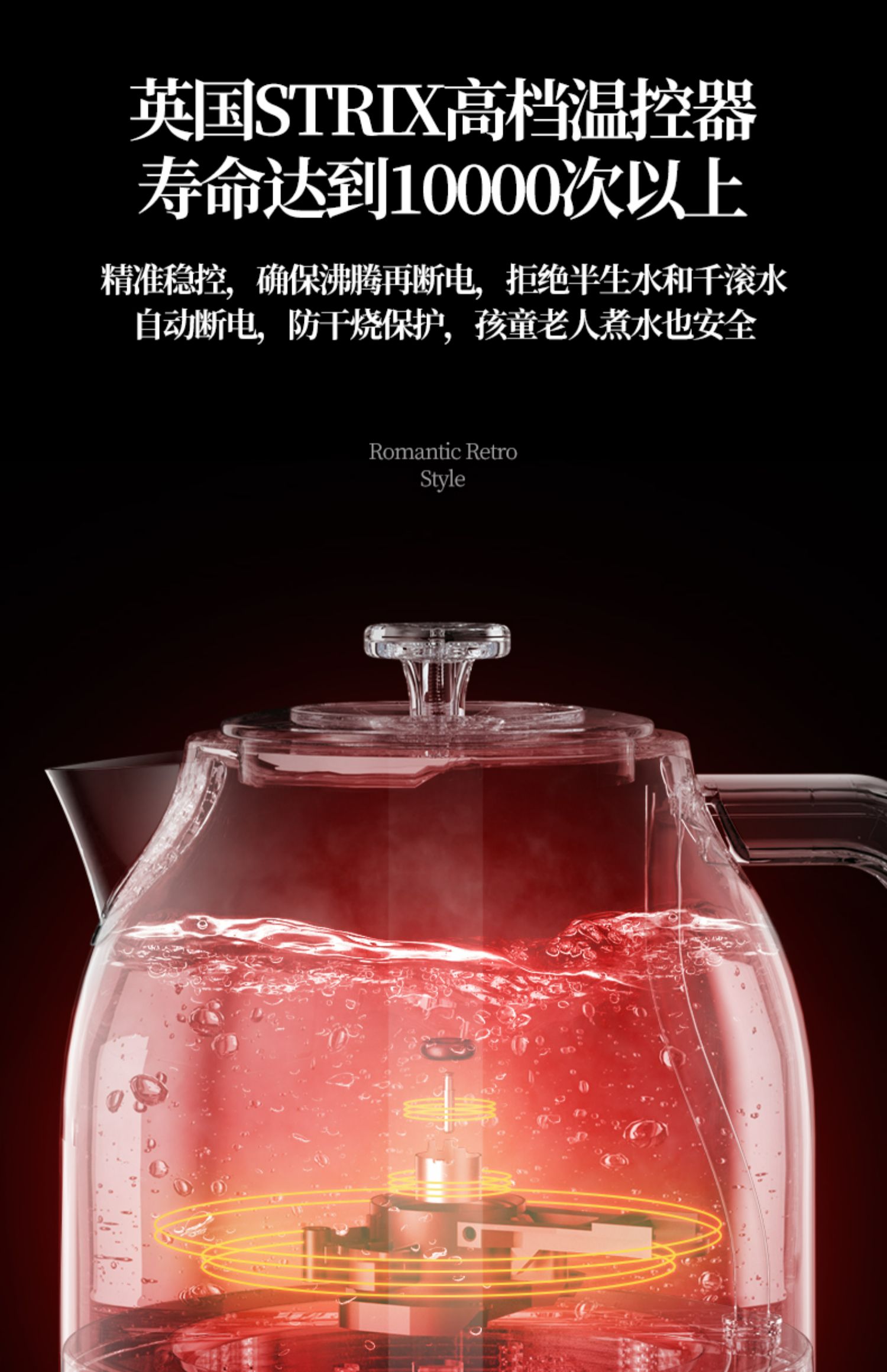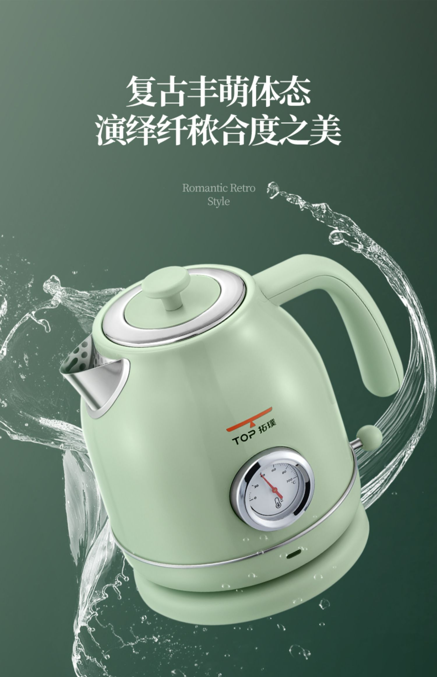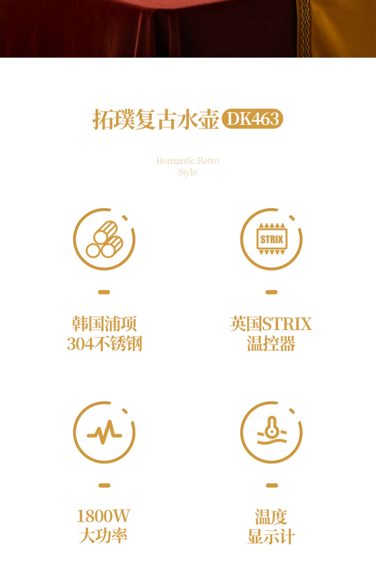 【进口温控器】拓璞DK463家用复古浪漫电热水壶一体烧水壶大容量电水壶