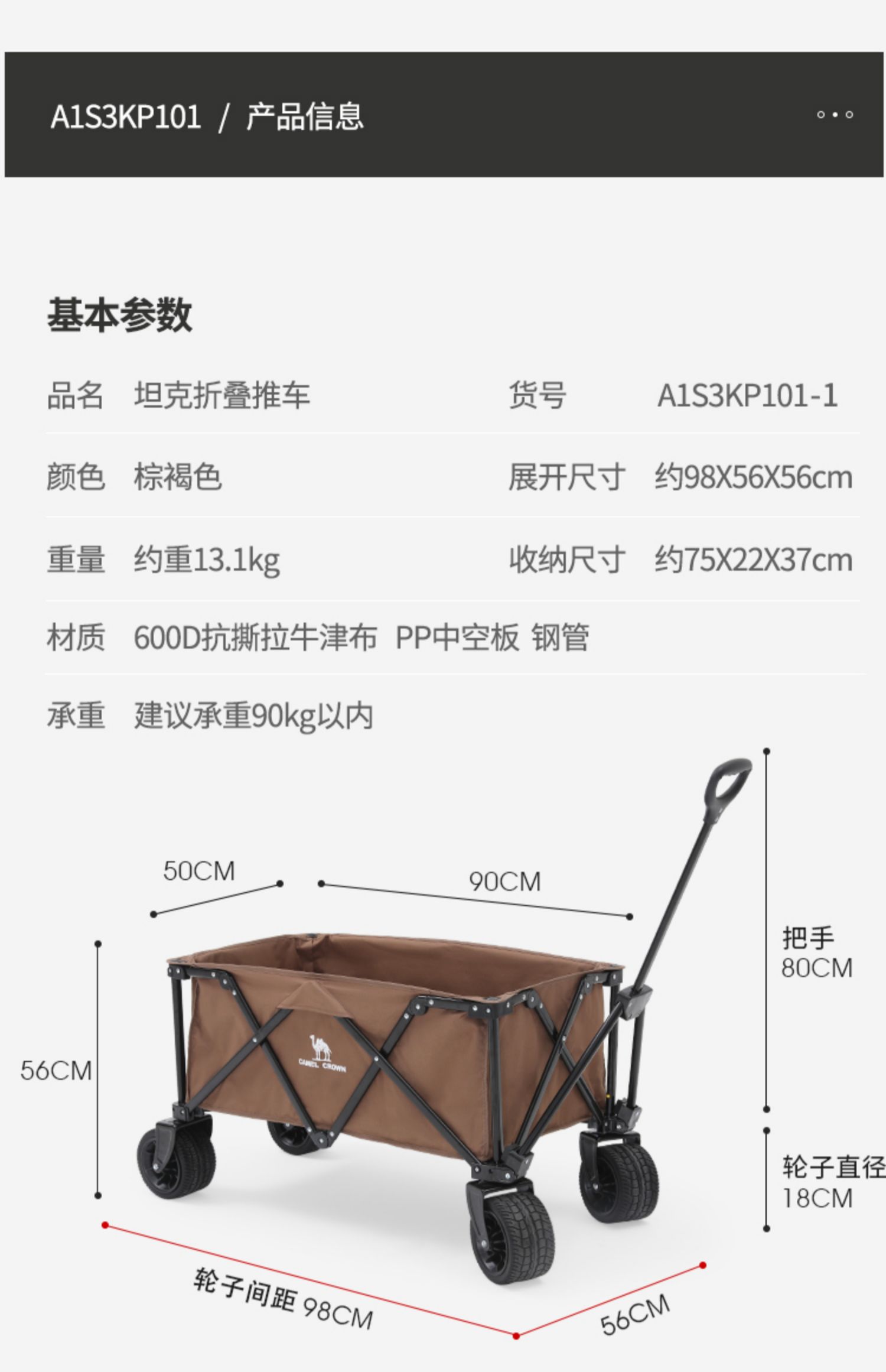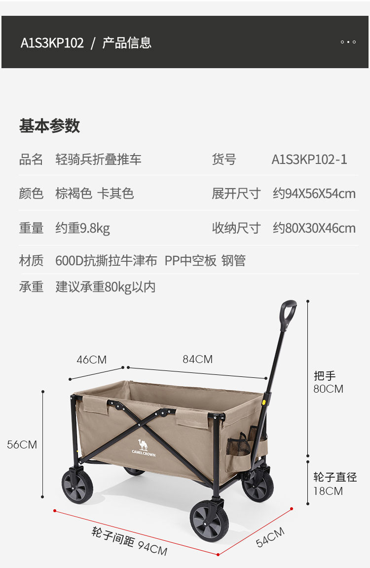 CAMEL户外装备营地车露营小拉车折叠多功能便携拉货野营野餐推车 A1S3KP102-1