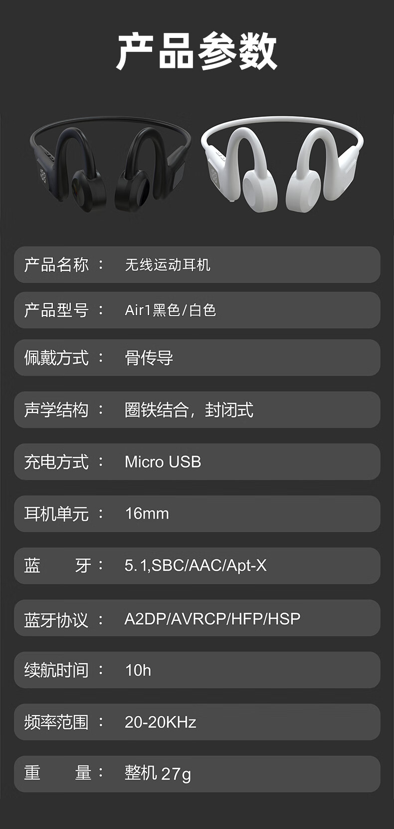 VIVP-无线蓝牙骨传导耳机Air1