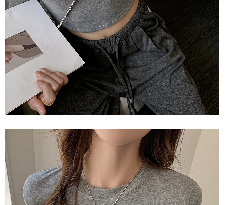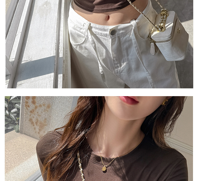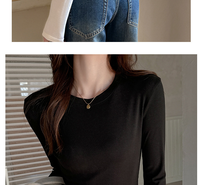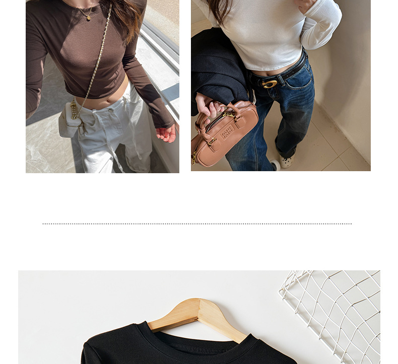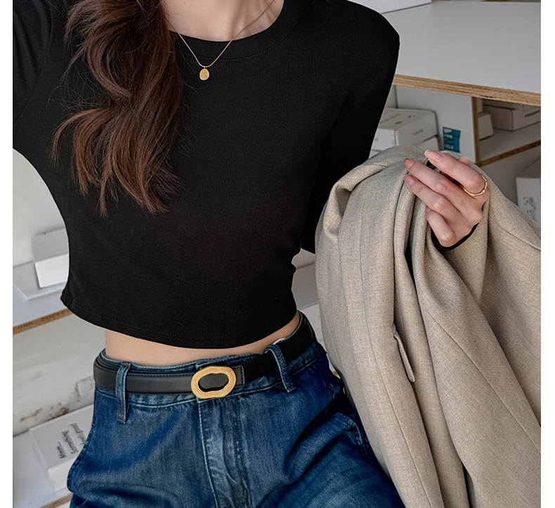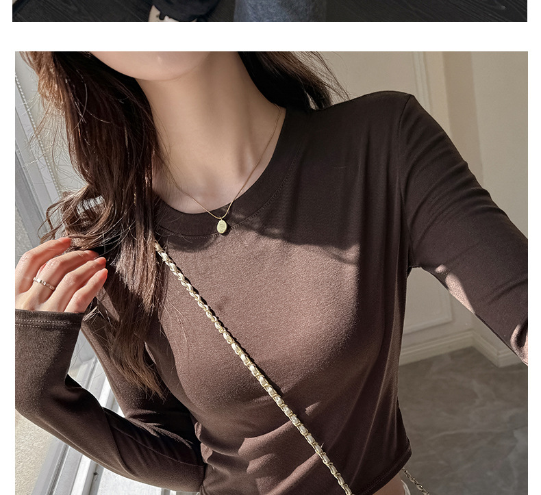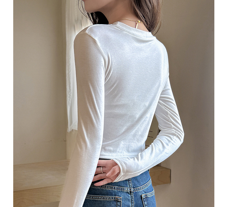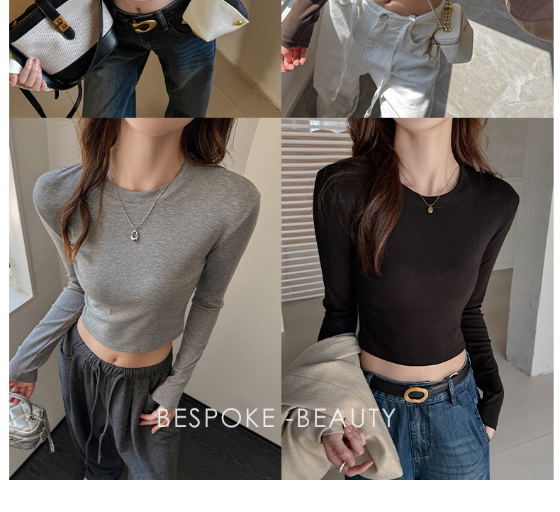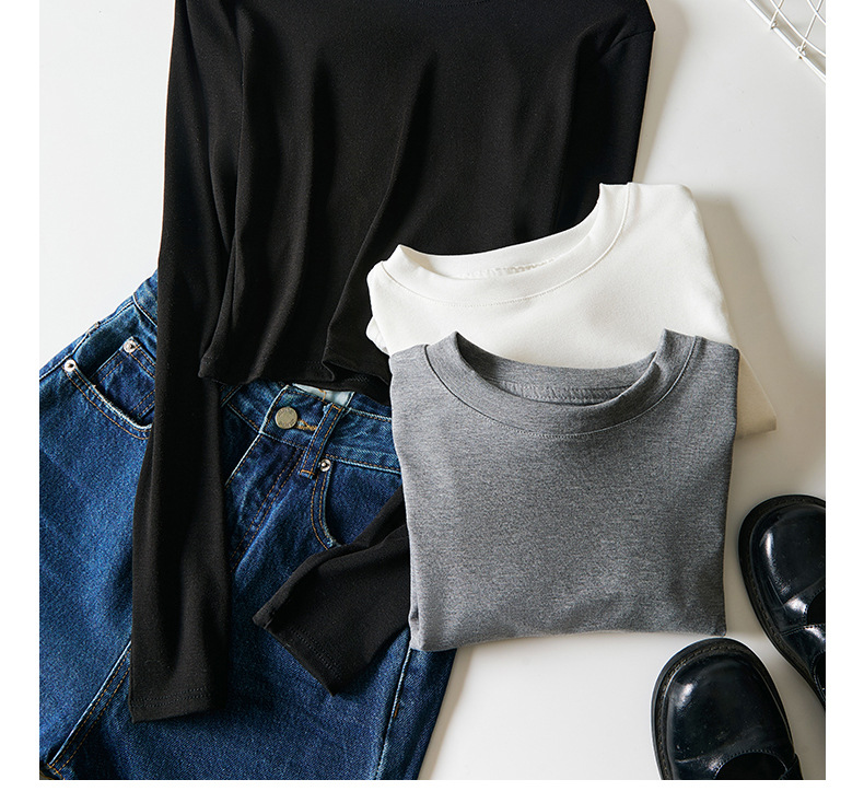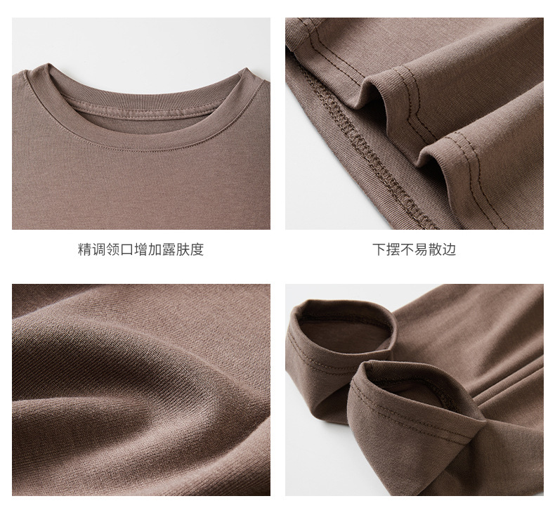 早秋新款莱赛尔天丝美式打底衫女内搭秋冬高级感正肩t恤短款修身百搭上衣